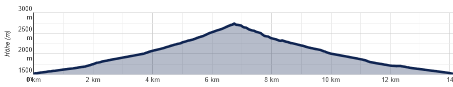 - Weiterhin halblinks halten und in Sichtweite der Untermalfrag Zollhütte bis auf 2.500 Metern Höhe aufsteigen, ehe man sich auf der Nordseite des Matthäuskopfes befindet.