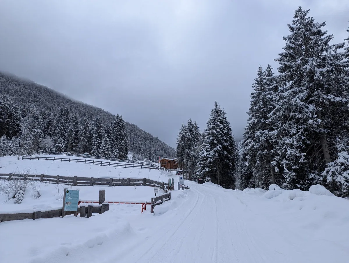 - Start beim Parkplatz Eisbrücke: Los geht es südlich vom Sellraintal. Die Parkplatzgebühr ist das Eintrittsgeld für den folgenden Wadenschmaus.