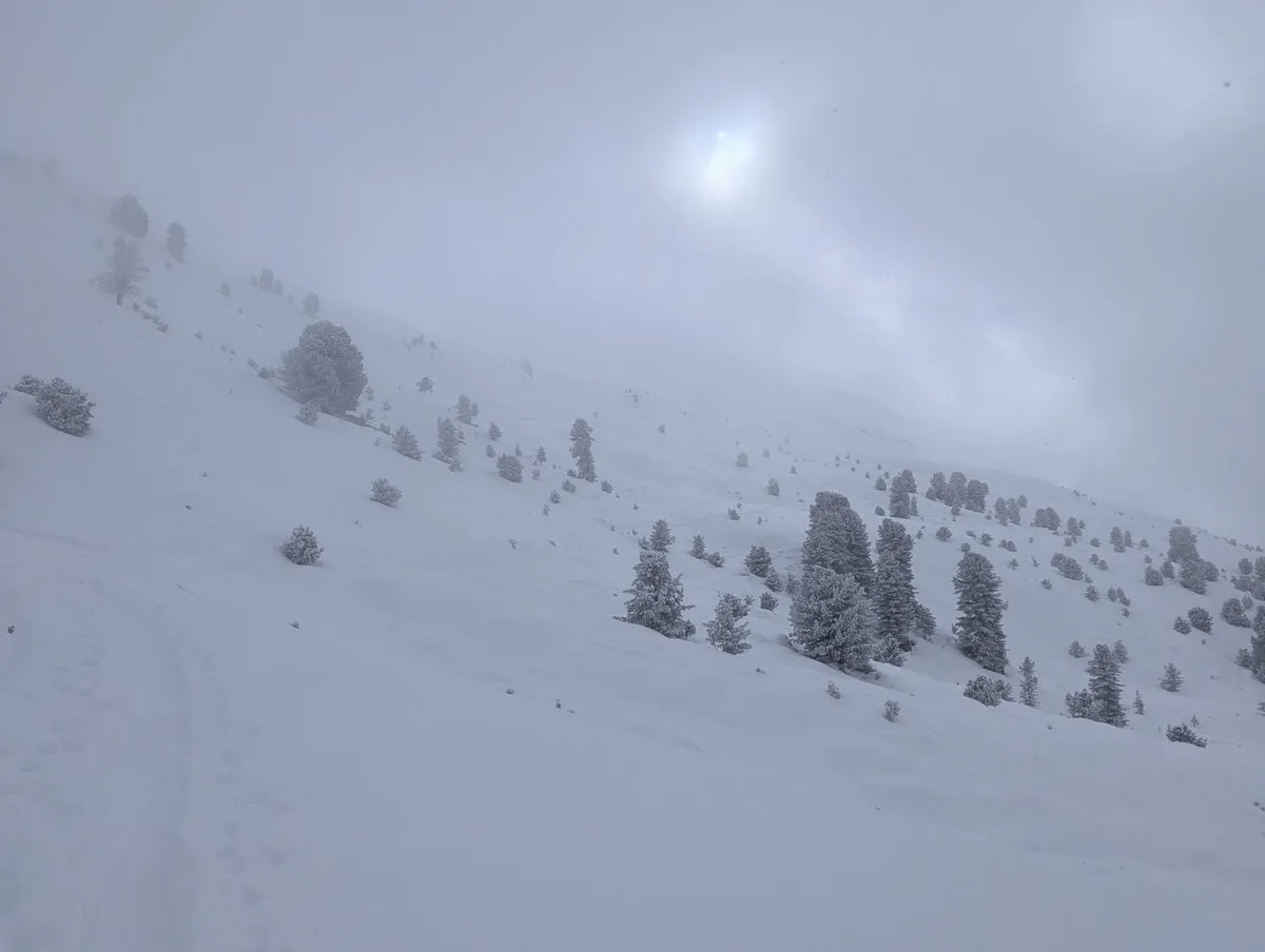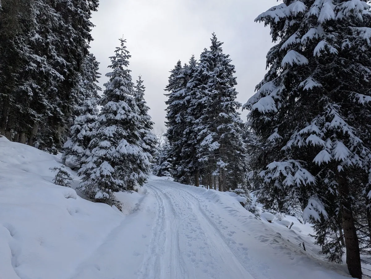 - Die Kür (Abfahrt): Bergab gibt es im breiten Terrain vielfältige Varianten. Wer Tree Runs liebt, hält sich kurz vor der Furgges Alm weiter südlich (also nicht nach rechts queren) und pflügt durch den Wald bergab Richtung Forststraße.