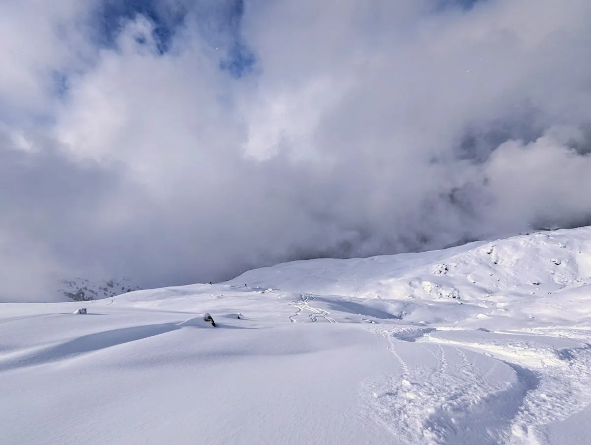 Wer hier Einsamkeit sucht, ist vermutlich im falschen Film, aber wer perfekten Firn oder Pulver in moderatem Gelände sucht, ist goldrichtig.