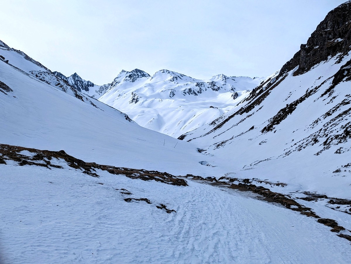 Skitour Schöntalspitze 02: Im Abschnitt zwischen Gleirschalm und Pforzheimer Hütte.
