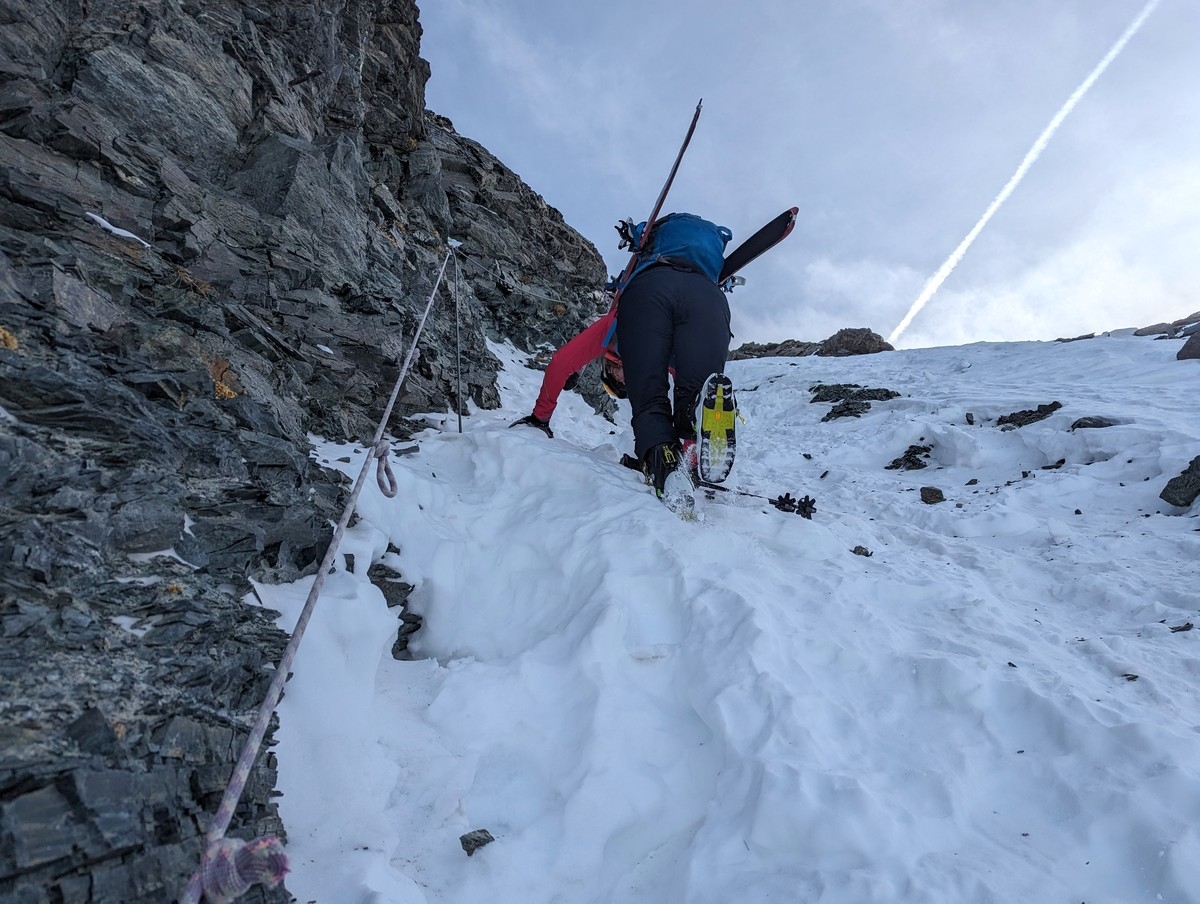 • Bei wenig Schnee sind die Fixseile frei, bei viel Schnee ist der Aufstieg mit den Skiern wahrscheinlich bis zur Zischgenscharte möglich.