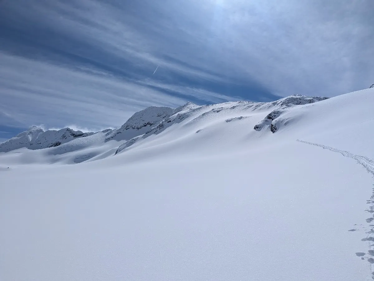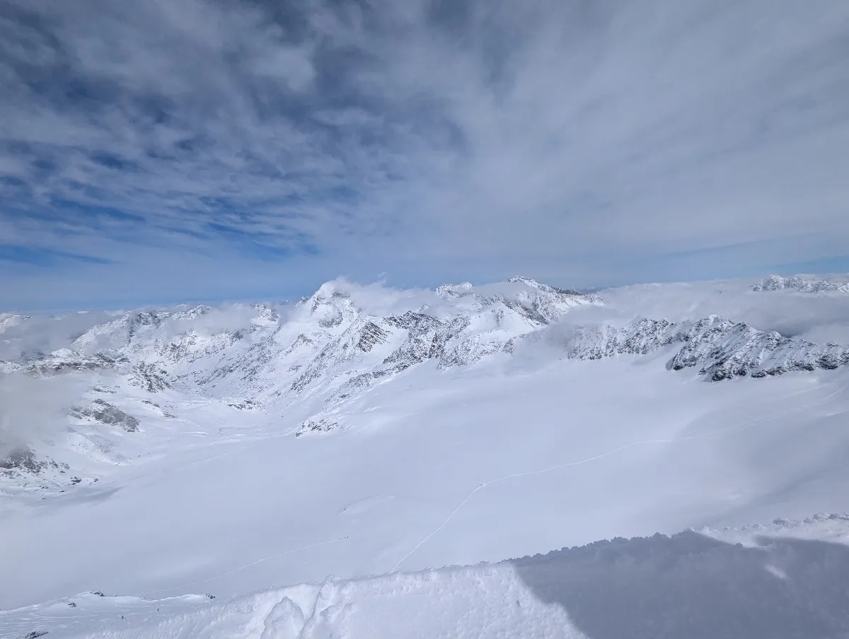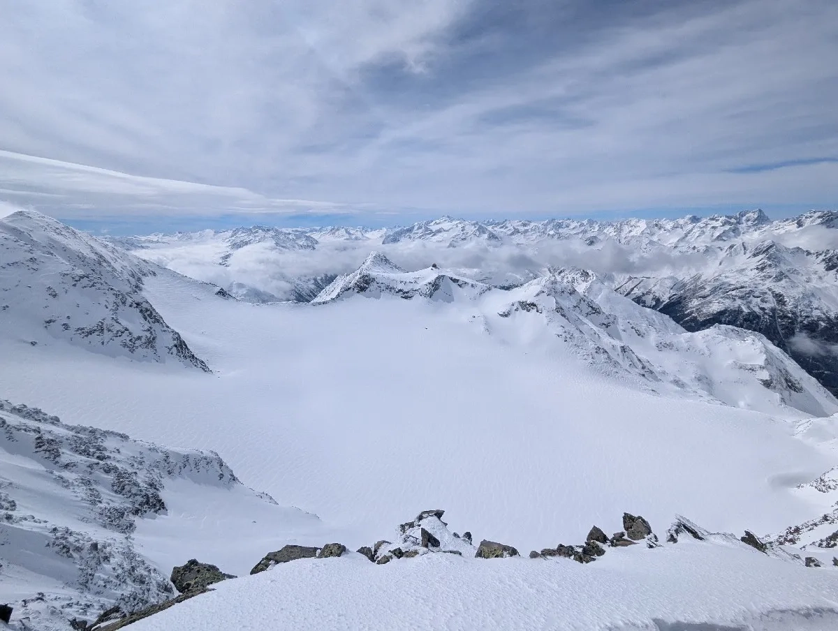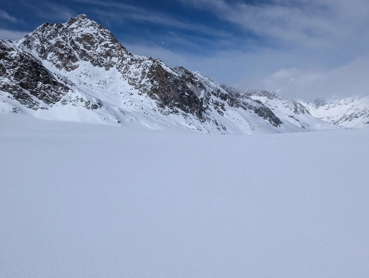 Wer die Kondition mitbringt oder sich ein paar Tage Zeit nimmt, kann hier eine der spektakulärsten Skitour-Kombinationen der Region erleben: den Windacher Daunkogel und die Kuhscheibe. Diese Tour bietet alles – von mächtigen Gletschern bis hin zu steilen Abfahrten mit jeder Menge Varianten.