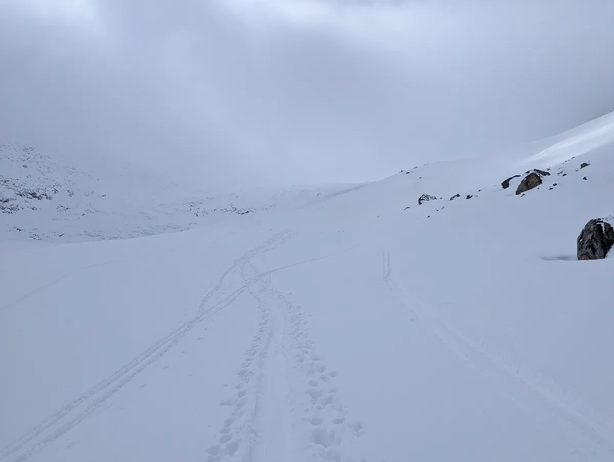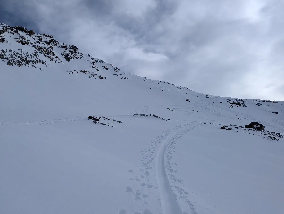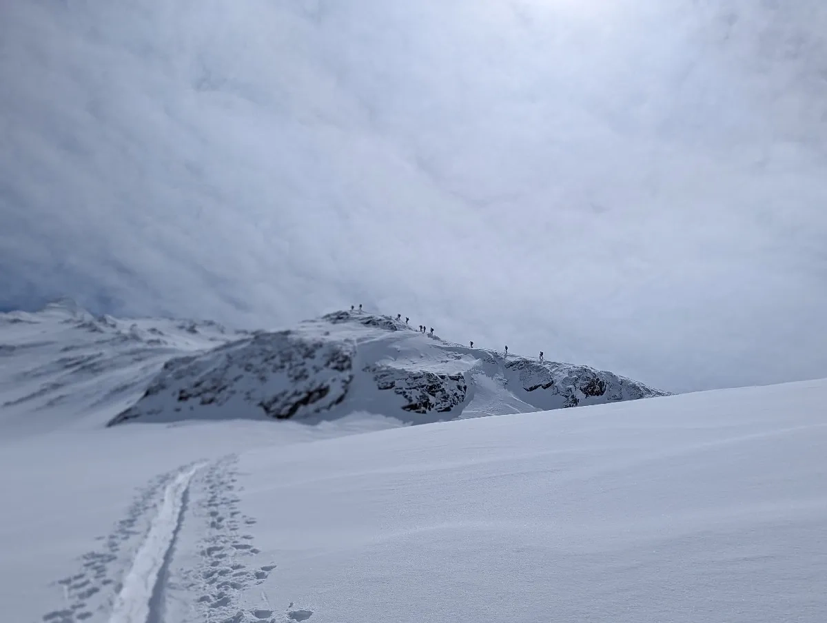 - Es folgt nun ein stetiger Wechsel aus flachem Terrain und moderat steilem Terrain, ehe der Schlussabschnitt zum Grat noch einmal etwas anspruchsvoller und steiler wird.