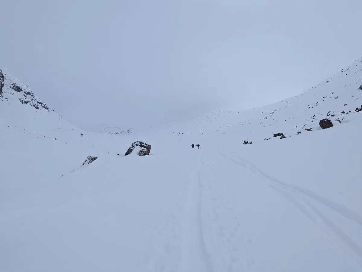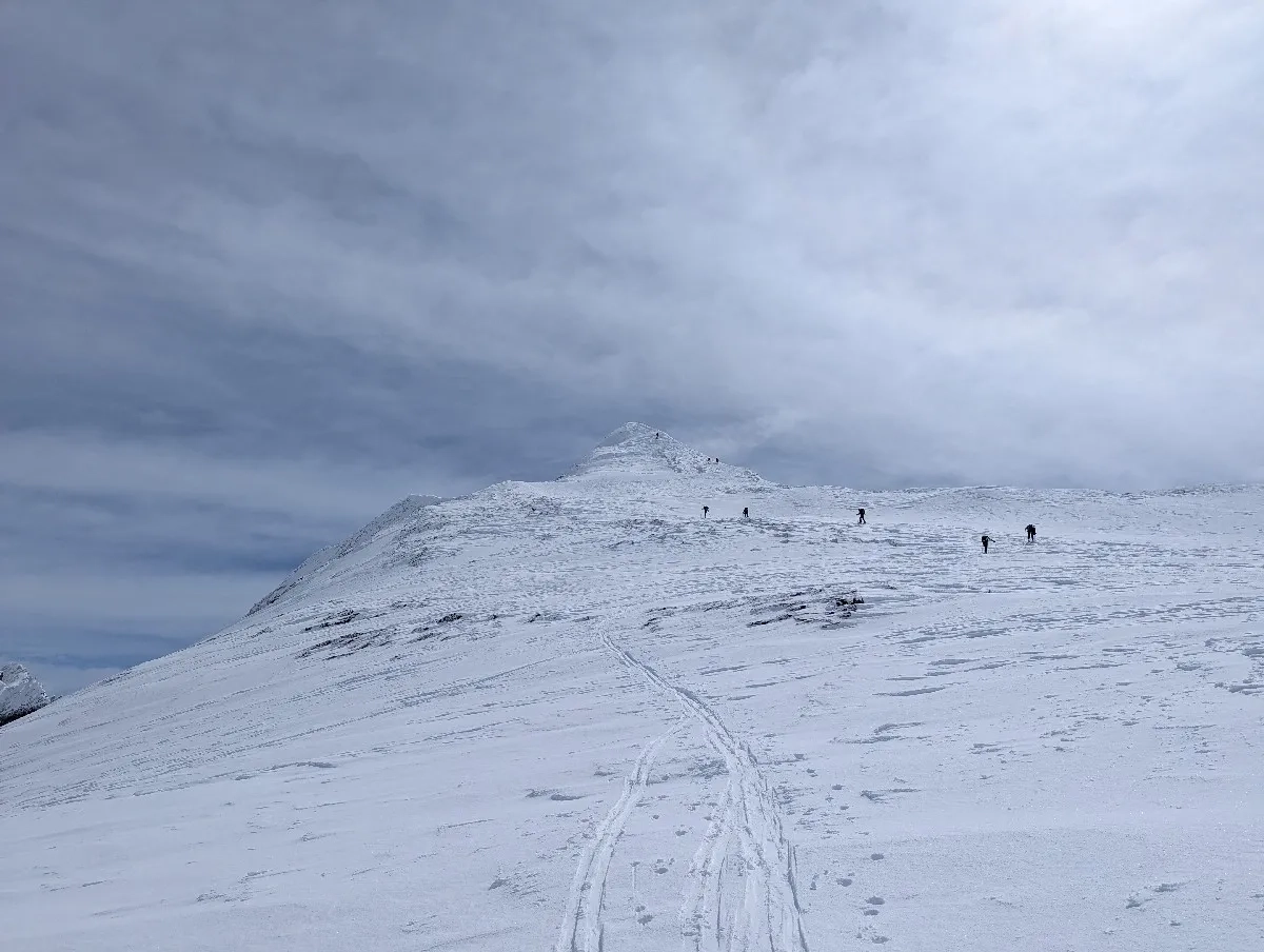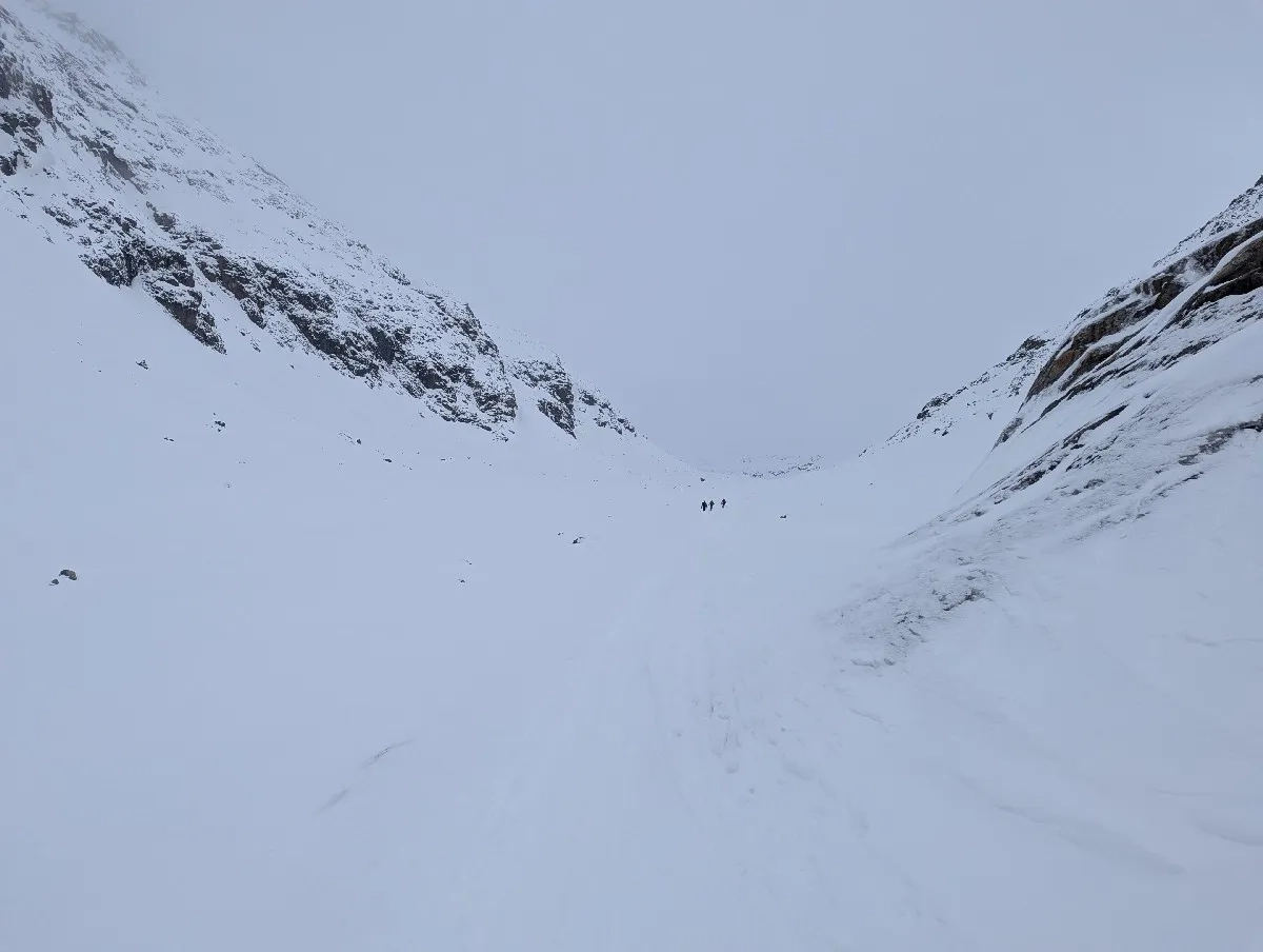 - Es folgt nun ein stetiger Wechsel aus flachem Terrain und moderat steilem Terrain, ehe der Schlussabschnitt zum Grat noch einmal etwas anspruchsvoller und steiler wird.