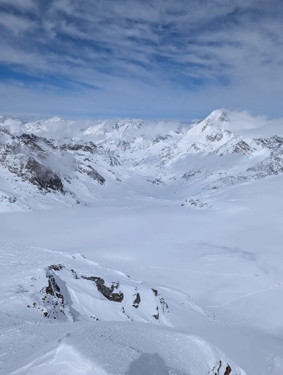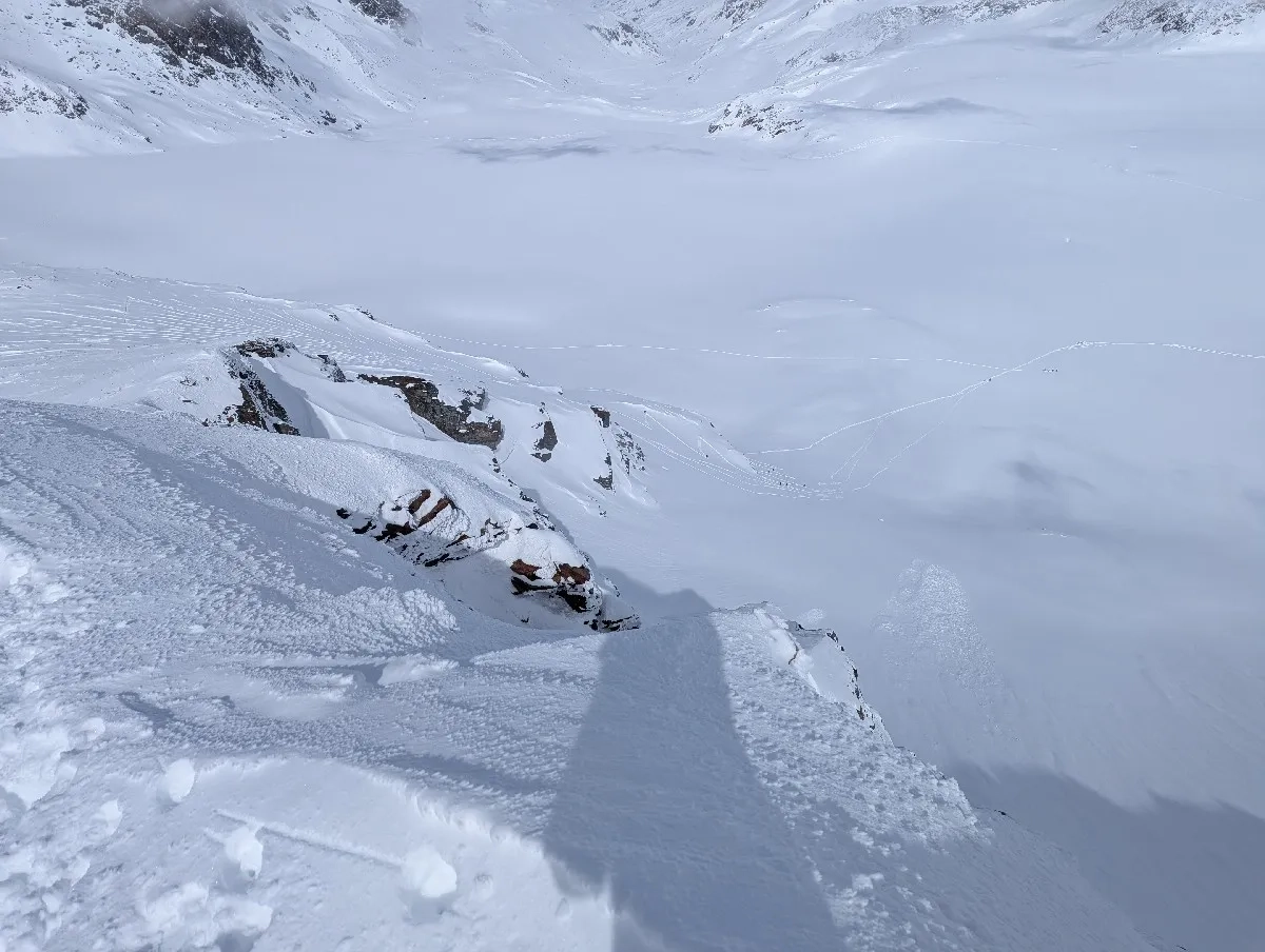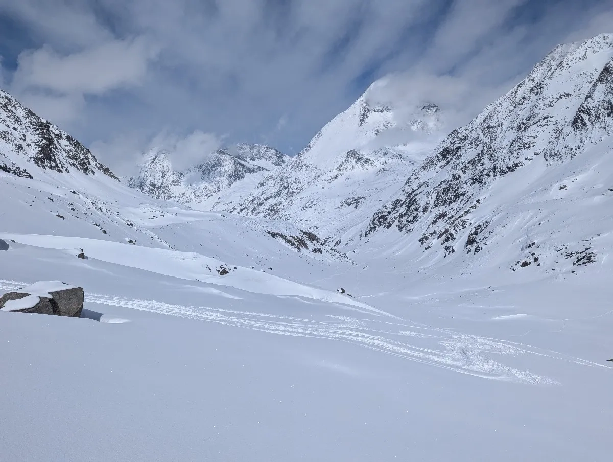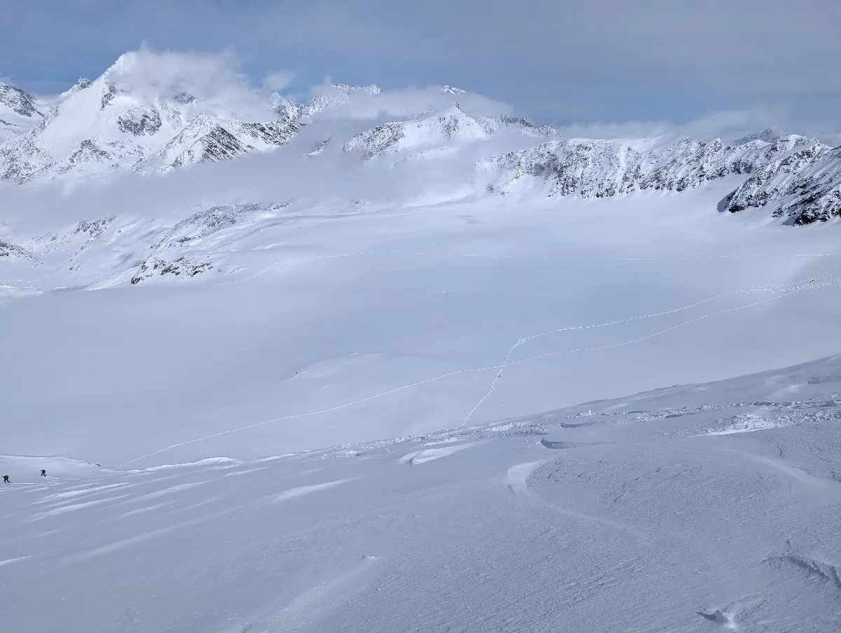 - Danach am Sulztalferner nach links gleiten lassen, bis man sich wieder im Bereich des Aufstiegs befindet.