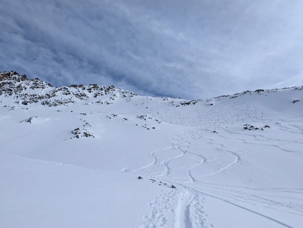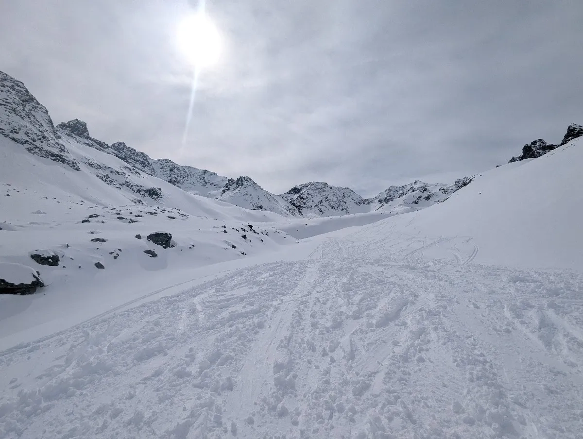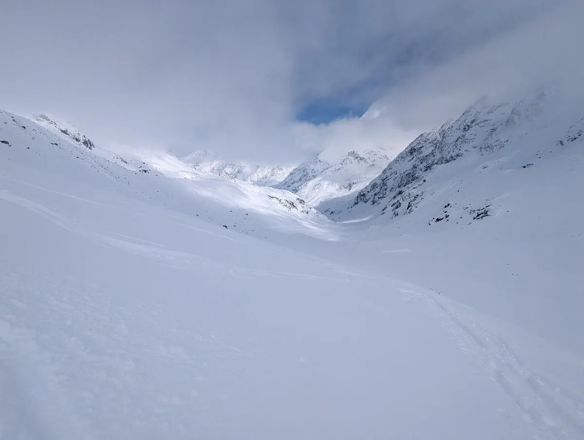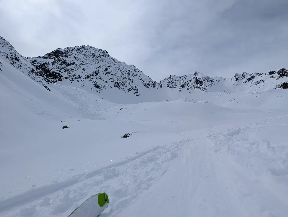 - Danach am Sulztalferner nach links gleiten lassen, bis man sich wieder im Bereich des Aufstiegs befindet.