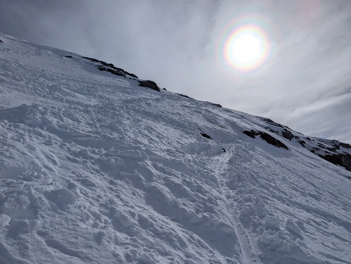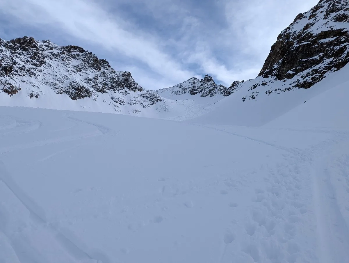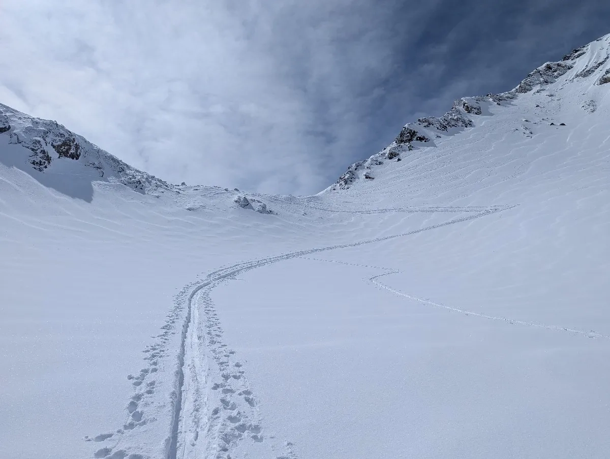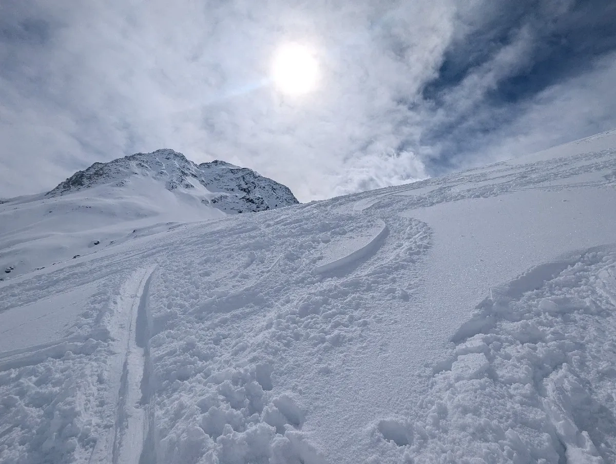 - Dieser ca. 200 Höhenmeter lange Steilhang ist das Highlight der Tour, denn dort hat man meist traumhaften Pulver...