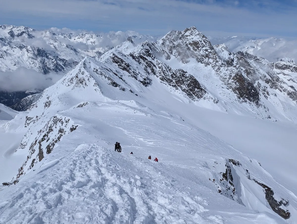 - Skidepot auf 3.100 Metern, wer mag, steigt zu Fuß in 10-15 Minuten zum Gipfel.