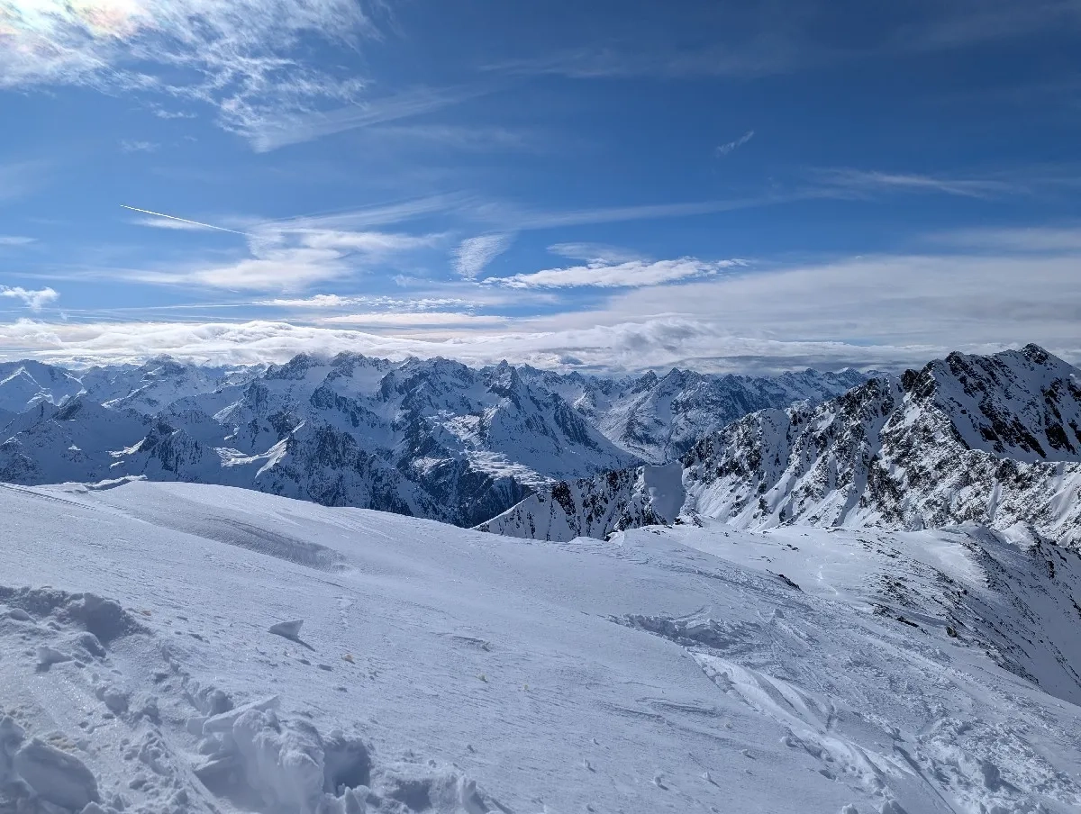 Mit seinen breiten Gletscherhängen ist der Windacher Daunkogel ein echtes Skitouren-Highlight. Der Gipfel liegt auf 3.301 Metern Höhe – allerdings nur der Wintergipfel. Der 47 Meter höhere Hauptgipfel ist im Winter praktisch nicht zugänglich, aber ehrlich gesagt, wen stören 47 Meter, wenn die Aussicht ohnehin schon atemberaubend ist?