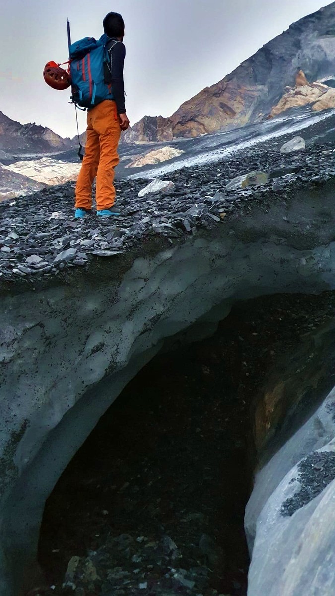 Der Abschnitt über den Gletscher, kann je nach Bedingungen über viele Spalten führen.
