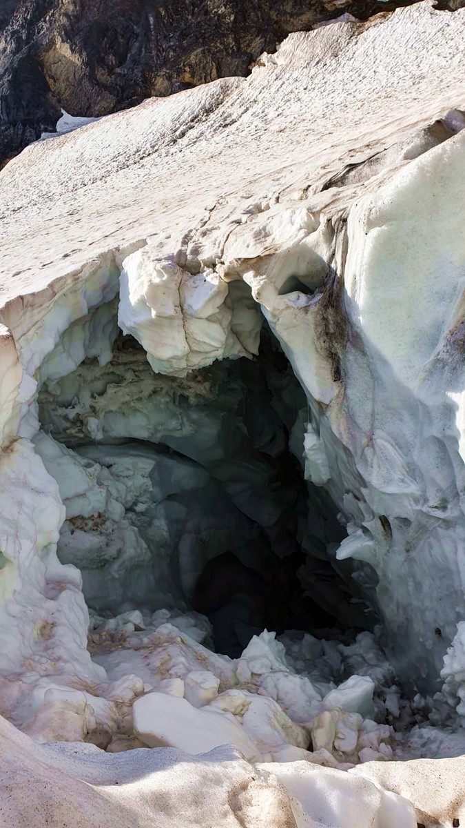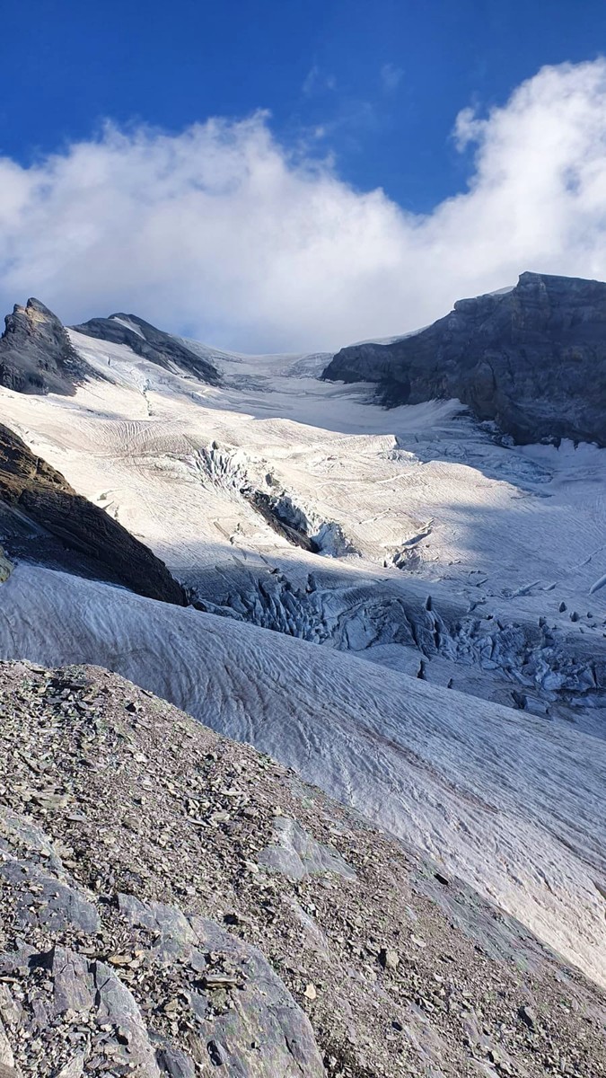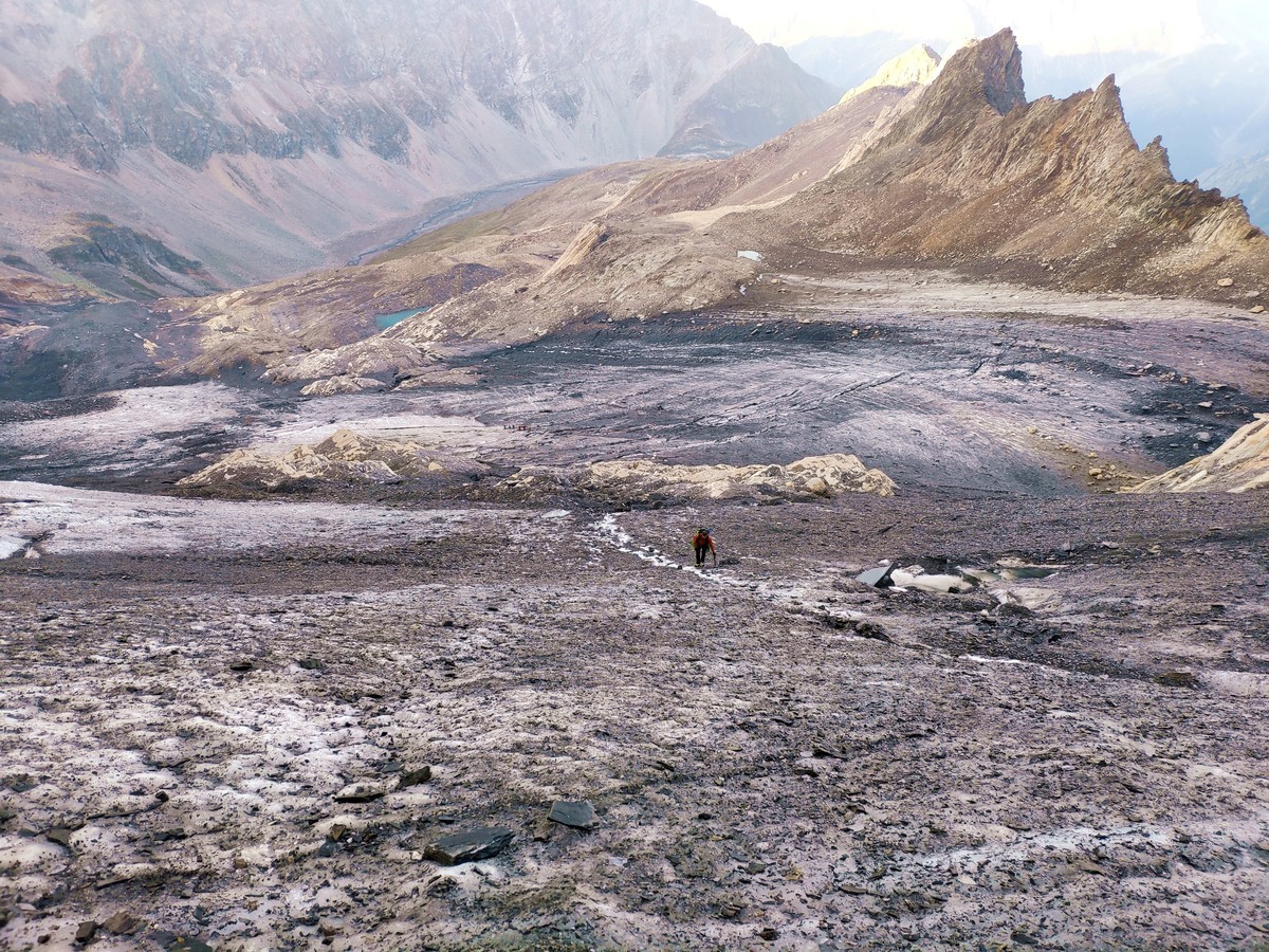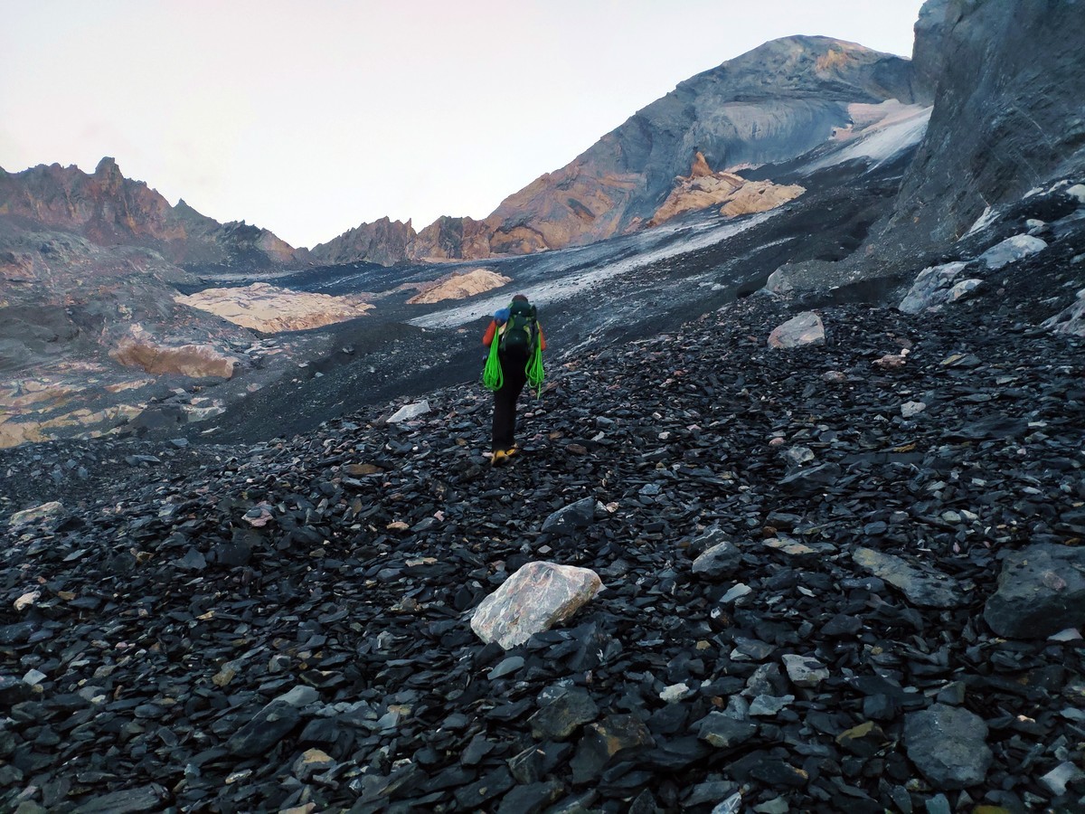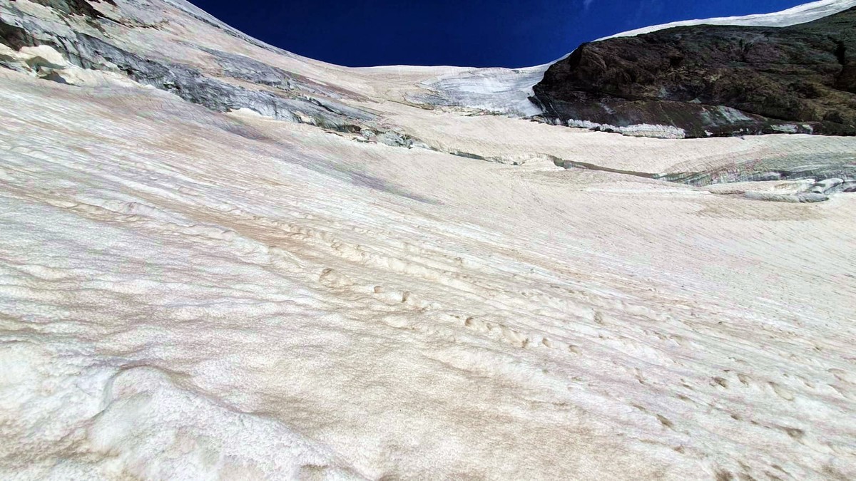 - Dort beginnt nun der anspruchsvolle Gletscherabschnitt. Achtung: Verdeckte Spalten sind gleich zu Beginn möglich.