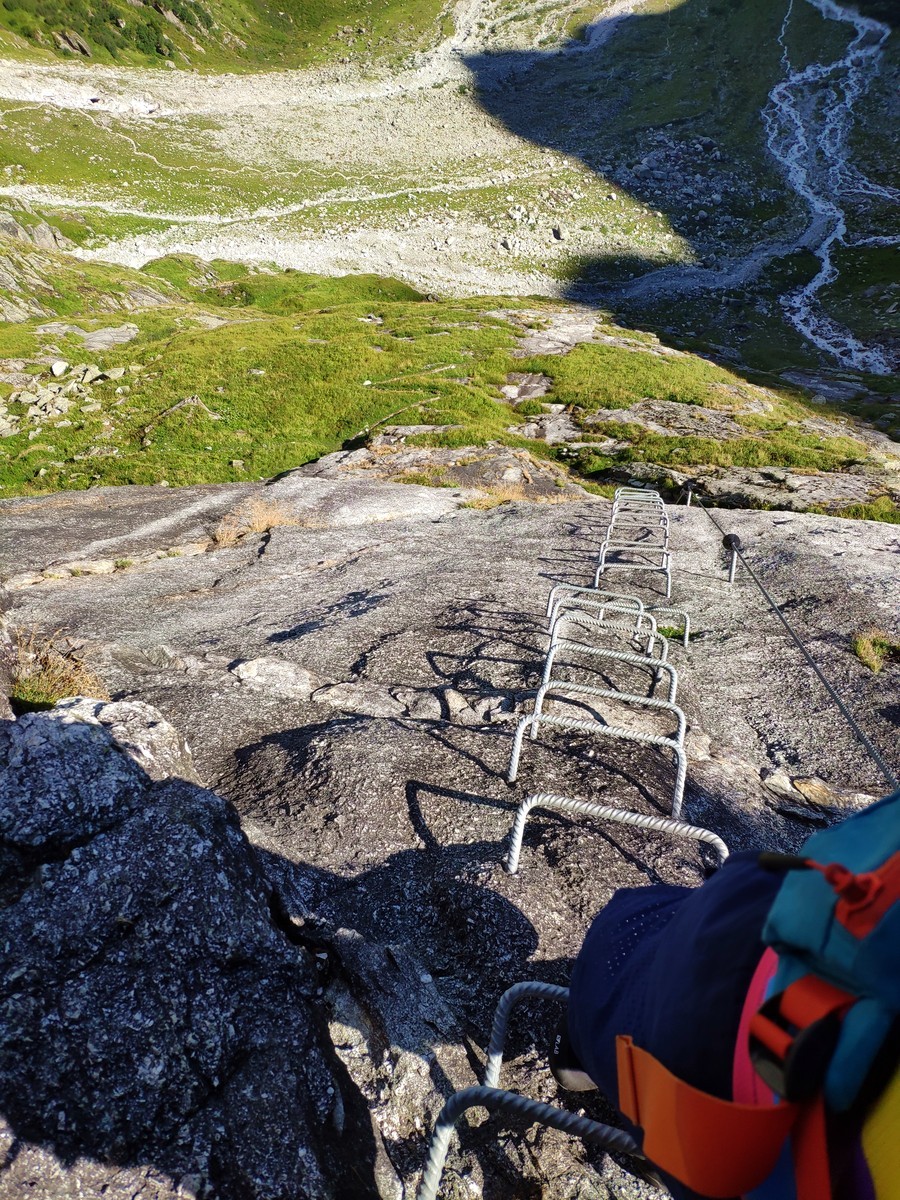 Kletterabschnitte gibt es, mit Ausnahme der Ketten vor dem Bifertengletscher, keine.