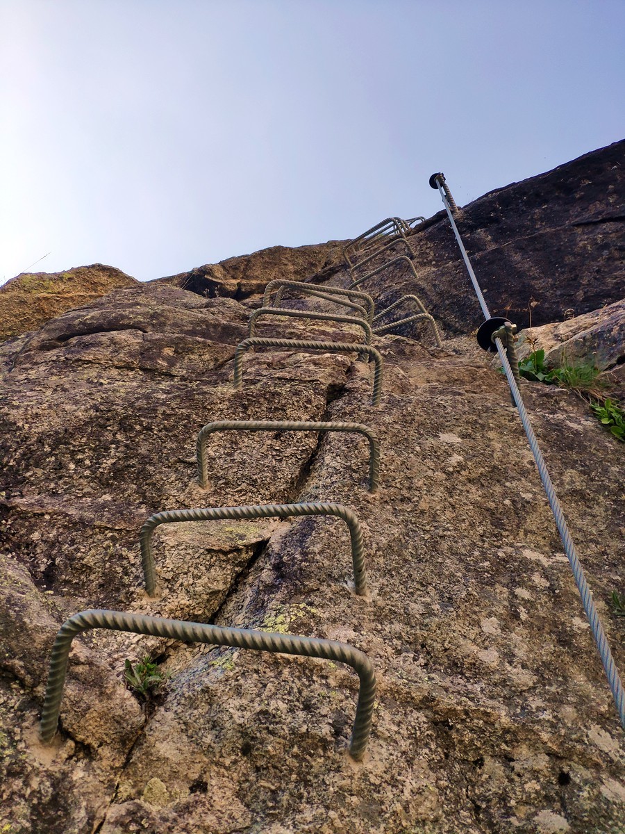 - Auf etwa 1.800 Metern Höhe kann nun alternativ der Normalweg verlassen werden und die restlichen rund 400 Höhenmeter bis zur Hütte über einen 2018 neu errichten Klettersteig (B/C) genommen werden.