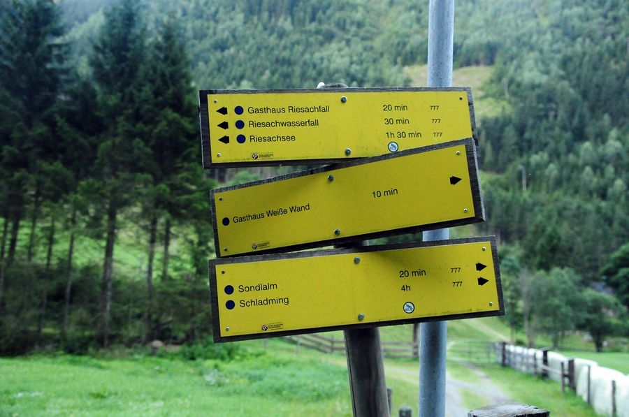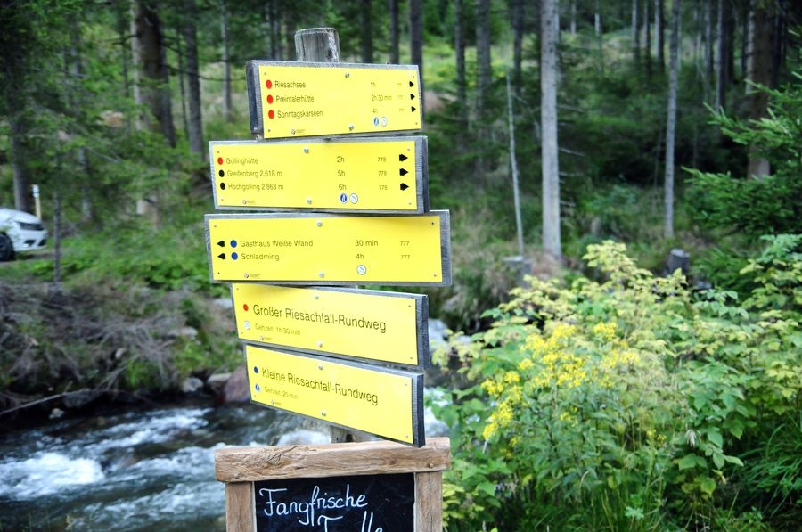 In Schladming die Straße Richtung Parkplatz Riesachfälle nehmen. Dort bis zum Ende der Straße fahren bis die großen Parkplätze erreicht werden.