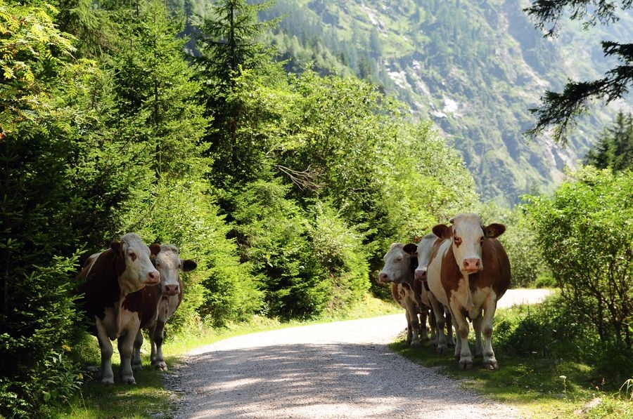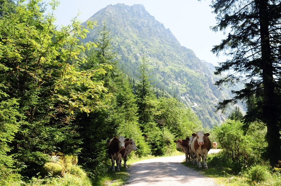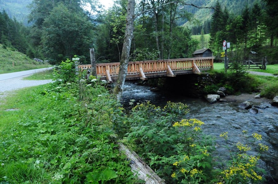 Bis kurz vor die Gollinghütte führt die Strecke durchgehend entlang eines Forstweges auf dem regelmäßig Kühe anzutreffen sind. Kurz vor der Hütte folgt ein ca. 300 Meter langer leichter Anstieg zur Gollinghütte. Von dieser geht es wieder flach ca. eine halbe Stunde lang Richtung Nordwand zum Golling Winkel.