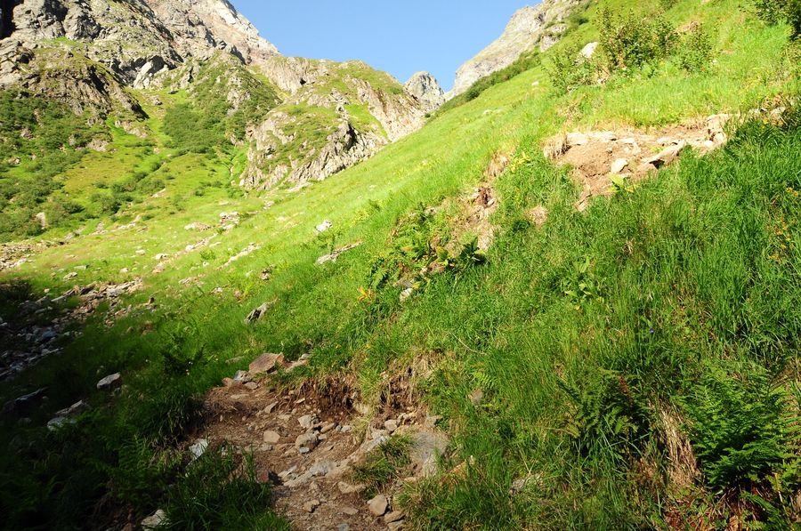 Beim Golling Winkel angekommen geht die Wanderung erst so richtig los. Nun folgen über 1.000 durchgehend steile Höhenmeter. Die über 600 Höhenmeter vom Gollingwinkel bis zur Gollingscharte gehen steil auf einem schönen Pfad bergauf. Teilweise geht es über etwas Gestein.