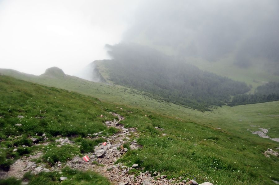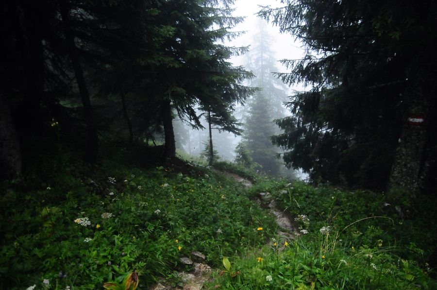 Der sehr gut markierte Weg führt anfangs lange aber sukzessive steil durch den Wald ehe man nach etwa der Hälfte den "Gspitzten Stein" erreicht hat. Dort geht es noch einmal durch ein kurzes Waldstück und entlang einer Schrofenwiese zum Grat, der zum Südwestgipfel des Lugauer führt.