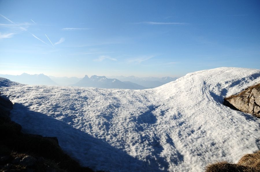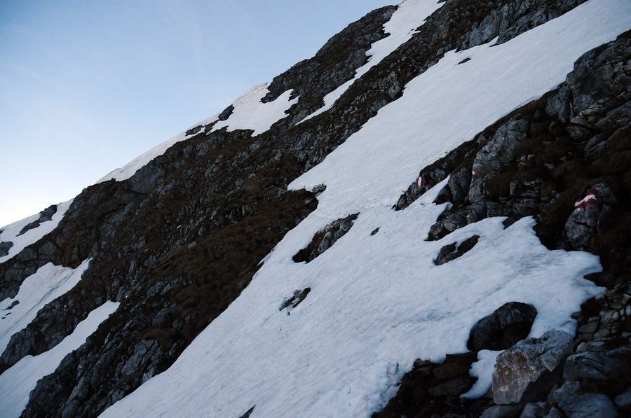Im Winter sind die SW-Flanke und die Hasenbergrinne die begehrten Ziele der Skitourengeher. Wegen der Lawinengefahr sollte der Hang allerdings früh befahren werden.
