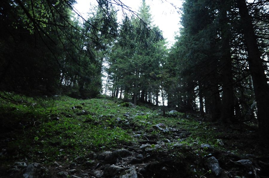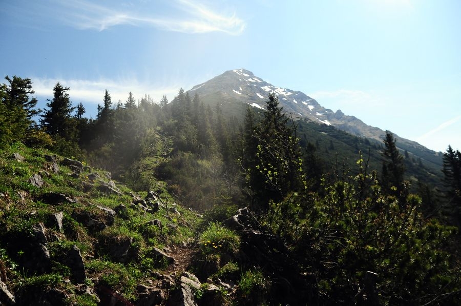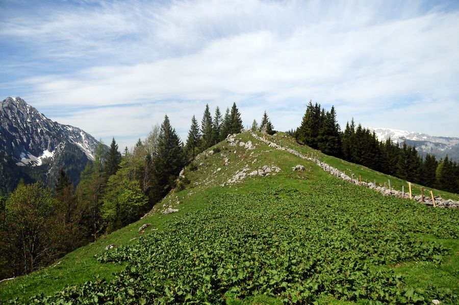 Nach ausreichendem Gipfelgenuss geht aus auf Weg 614 retour. Dieser zweigt nach wenigen Minuten auf dem Retourweg vom Aufstiegsweg nach rechts ab. Auf dem Weg bergab hat man immer wieder den prächtigen Bosruck im Blick. 15 Minuten vor der Hofalm führt eine Abzweigung (Weg 618 - 601) zurück zum Startpunkt, der Bosruckhütte.