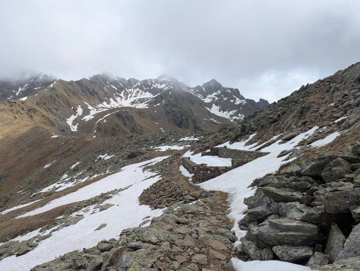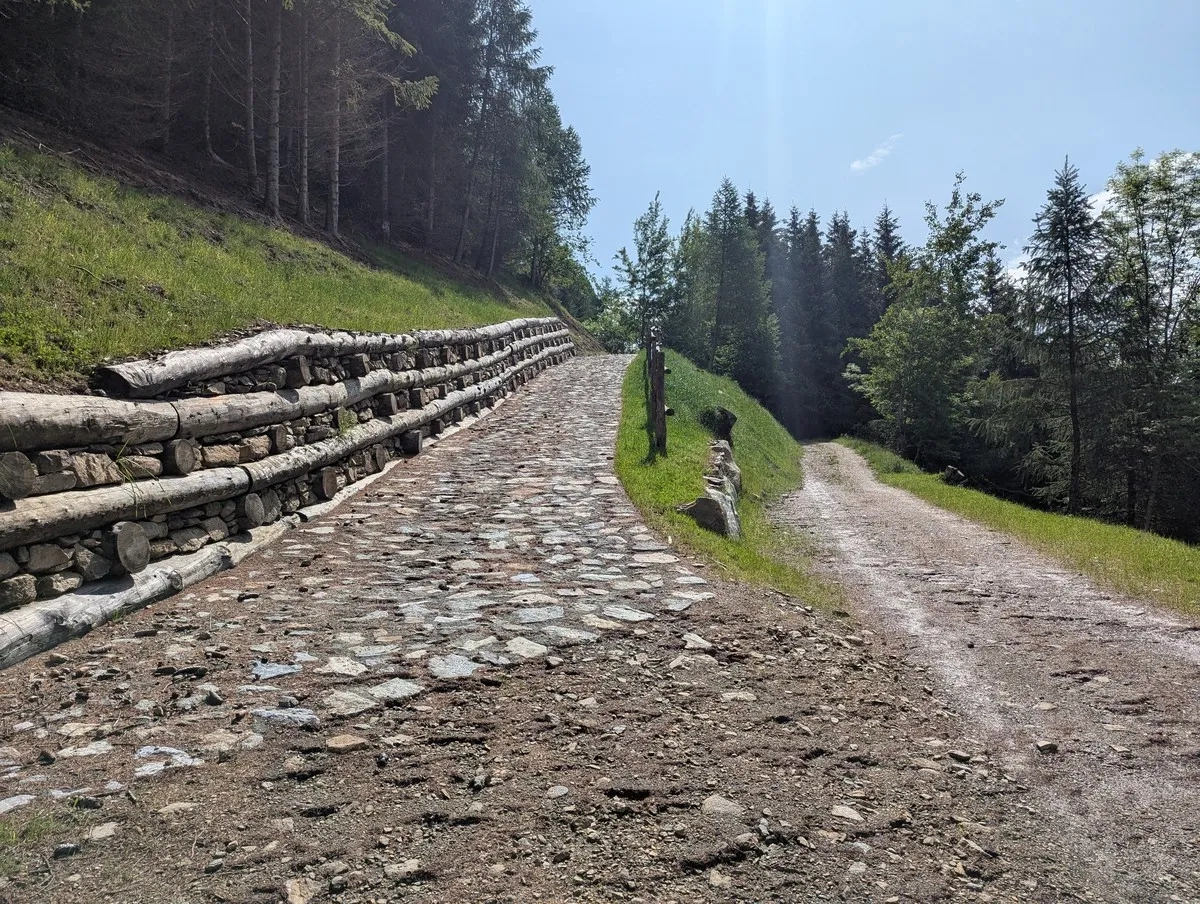- Ab etwa 2.000 Metern lichtet sich der Wald – der Blick wird freier, die Beine schwerer. Aber es lohnt sich! Auf 2.400 Metern warten alte Kriegsstellungen und historische Infotafeln. Kurz innehalten, Geschichte atmen, weiterziehen.