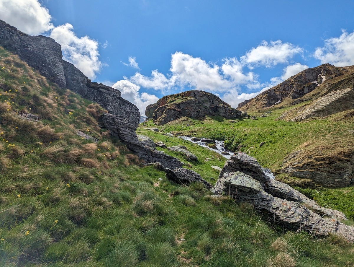 Technisch einfach, fast ohne Absturzgefahr. Einzig etwas anspruchsvoller ist der Abschnitt zu Beginn neben dem Wasserfall, da es dort auch keine Wegspuren gibt und es etwas rutschig sein kann.