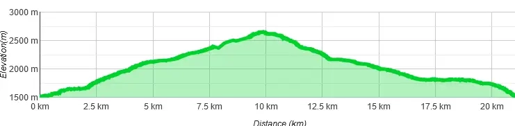 - Kurz danach wird auf etwa 2.100 Metern Höhe ein riesiges und sehr schönes Plateau erreicht, von welchem aus die Rudoka erstmals zu sehen ist.