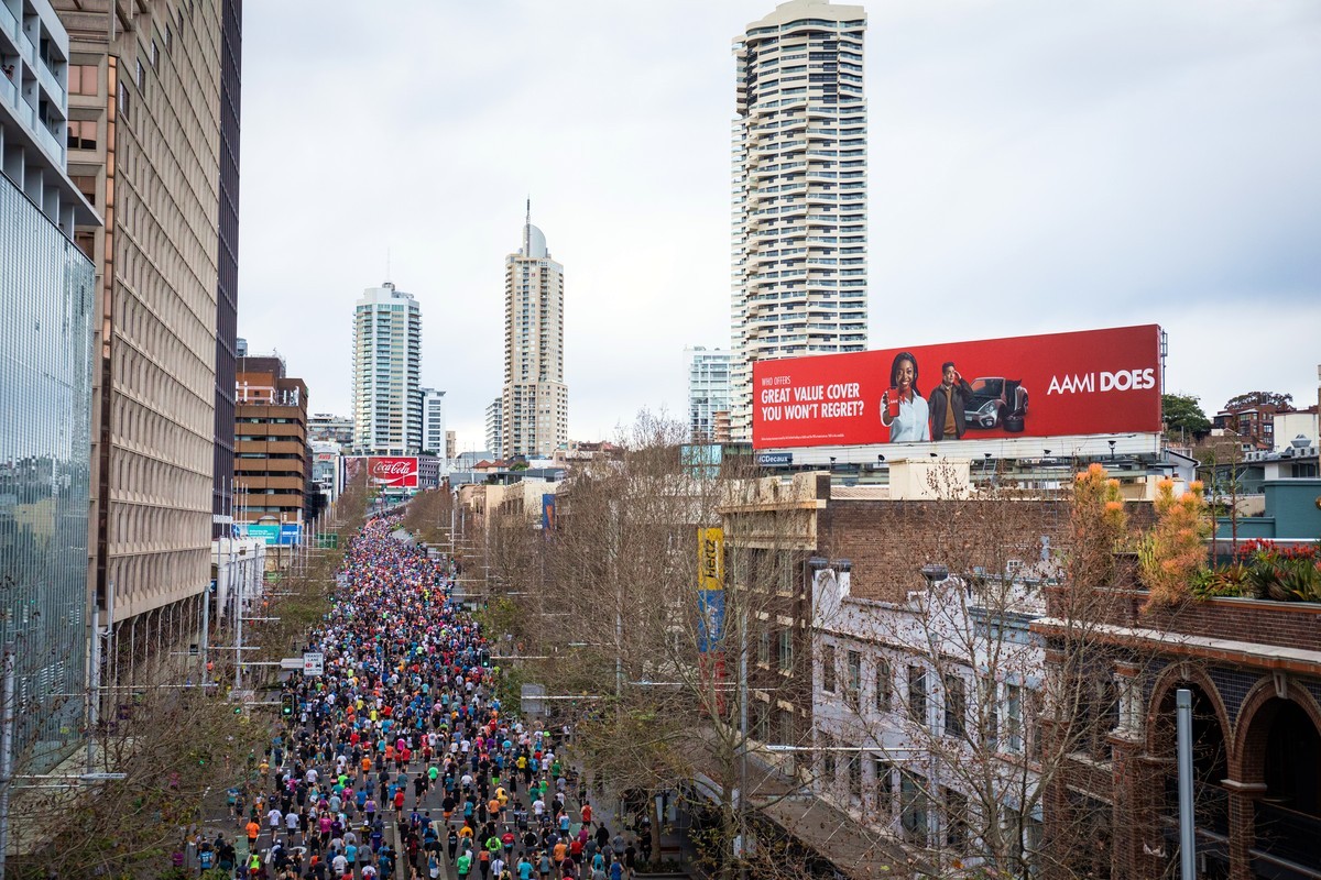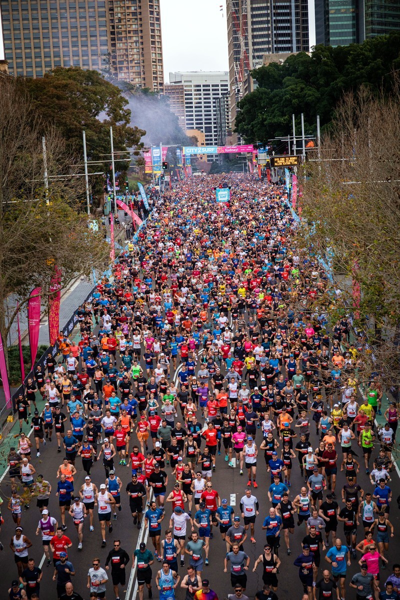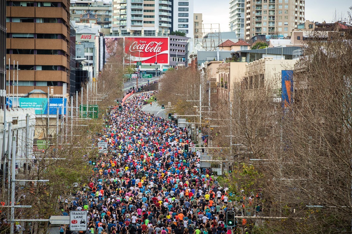 Rund 80.000 Läufer nehmen an diesem 14 Kilometer langen Wettbewerb in Sydney teil.