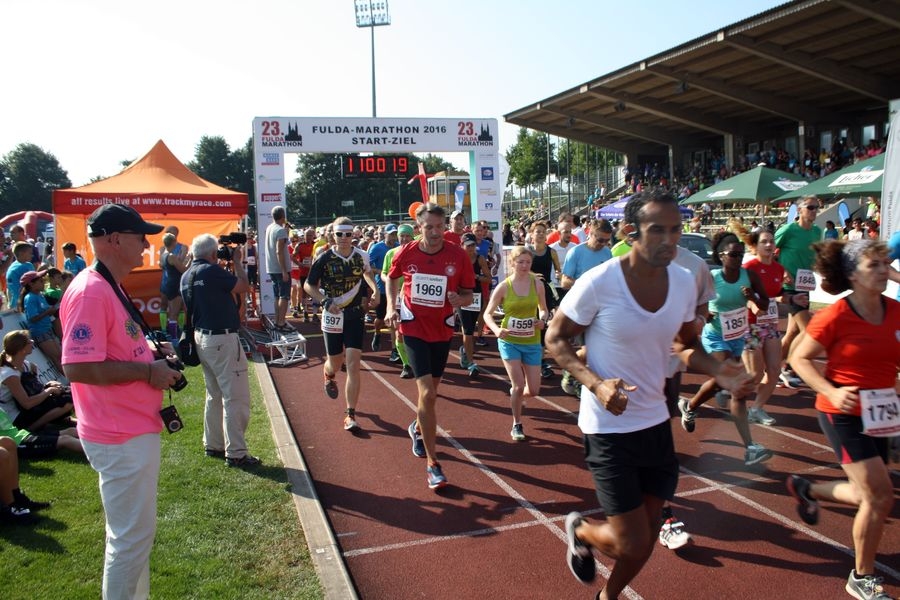 Der Start befindet sich im Stadion der Stadt Fulda gegenüber der Haupttribüne.