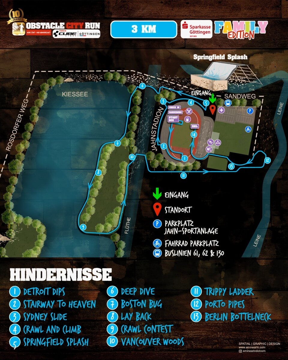 Auf der 3KM-Family Edition erwarten euch 10 Hindernisse, die explizit für den Spaß mit der ganzen Familie ausgelegt sind.