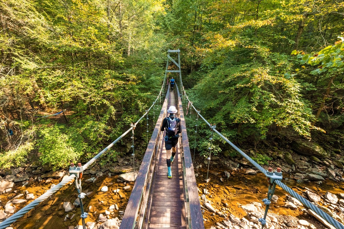 Mit fast 21.000 Höhenmetern wird der 100-Meilen-Kurs als einer der anspruchsvollsten Läufe im Osten der USA bezeichnet. Du startest und beendest deinen Lauf bei den historischen Natural Chimneys, einer beeindruckenden Kalksteinformation. Der Weg führt dich durch dichte Wälder, steile Bergrücken und über legendäre Trails wie den Wild Oak National Recreation Trail. Dabei erklimmst du ikonische Gipfel wie den Reddish Knob und den Little Bald Knob. Auf den Singletracks kannst du die Ruhe der Natur und die Einsamkeit auf den Kämmen genießen. Ein besonderes Highlight: der anspruchsvolle Aufstieg auf Elliott's Knob – der höchste Punkt der Strecke.