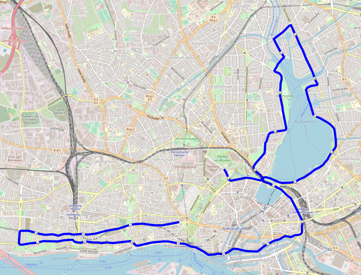 Strecke: U.a. mit Elbe, Innenalster, Außenalster, Stephansplatz und Innenstadt.