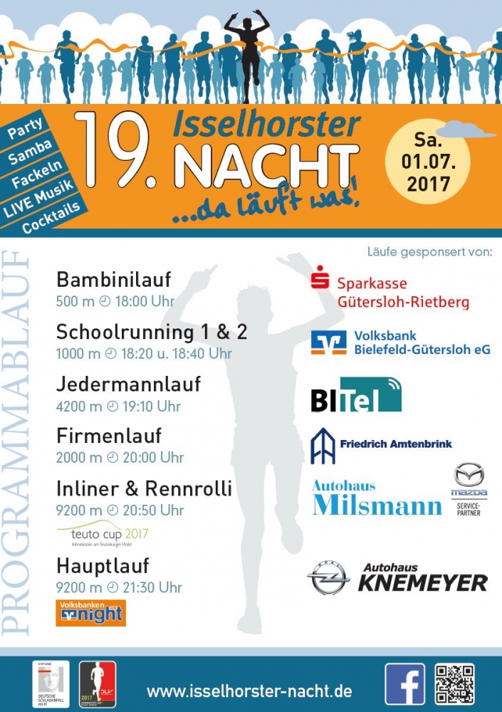 Die Isselhorster Nacht ist seit Anbeginn die größte jährliche Volkslaufveranstaltung im Kreis Gütersloh. Volkslauf bedeutet, dass sowohl die Kindergartenkinder, Grundschüler, ambitionierte Läufer und Skater als auch die Asse der westfälischen und überregionalen Spitzenathleten sich in den ausgeschriebenen Wettkämpfen messen. Der Mix von Hobbysportlern und Semiprofis sorgt für ein tolles und ausgeglichenes Leistungsspektrum.