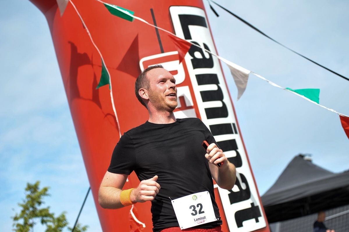 Toller Lauf mit Hund ins Ziel laufen ist wunderbar