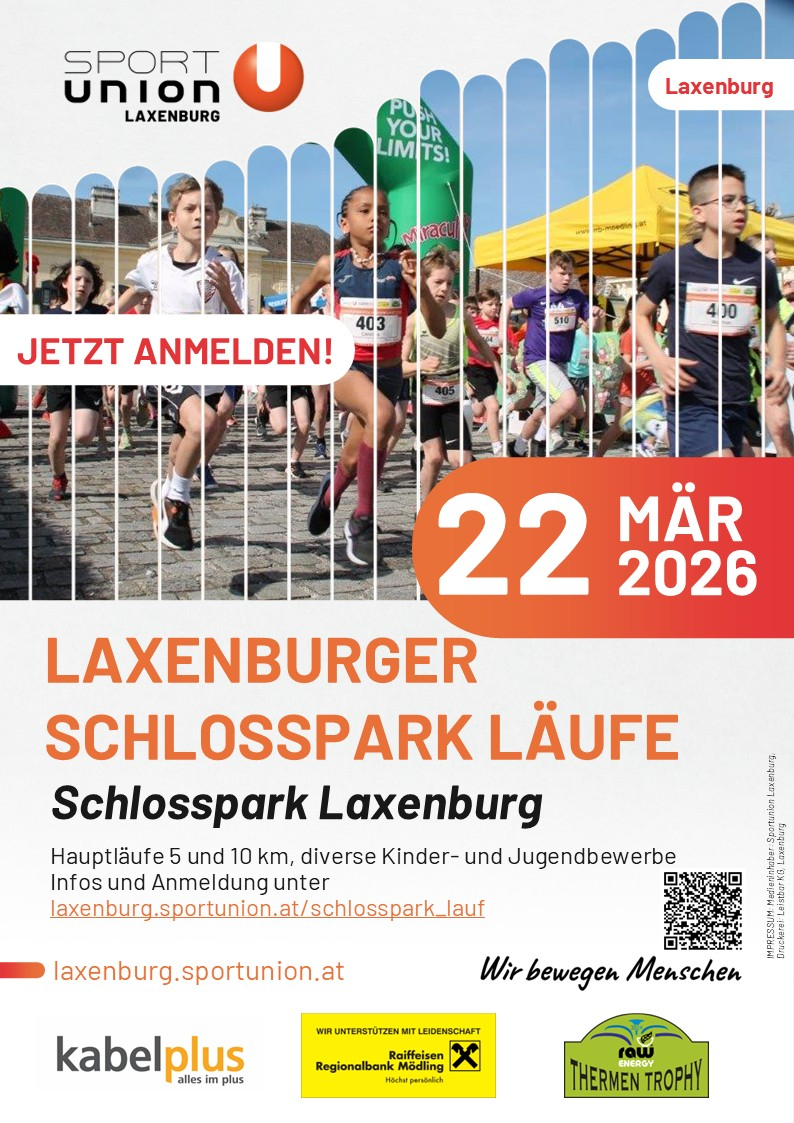 Im April rganisiert die SPORTUNION Laxenburg die Laxenburger Schlosspark Läufe. Die Schlosspark Läufe finden im wunderschönen, historischen Landschaftsgarten Schlosspark Laxenburg statt und sind Teil der Thermentrophy – der Laufcup Niederösterreichs.
