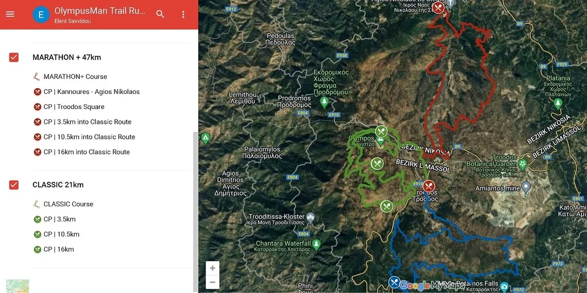 Alle drei Rennen starten auf dem Troodos-Platz und führen dich auf unterschiedlichen Routen bis zum Gipfel des Olympus. Unterwegs bieten Verpflegungsstationen in den Dörfern und strategischen Checkpoints alles, was du brauchst, um Kraft für den nächsten Anstieg zu sammeln. Hier sind die drei Strecken im Überblick: