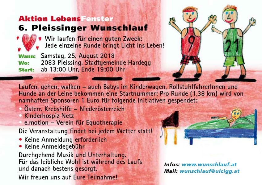834 Starterinnen haben den Weg nach Pleissing gefunden, um in Summe 6.160 Runden und somit Euro für den guten Zweck zu drehen. Für die Spitzenläufer war es zu heiß, das tat dem tollen, karitativen und auch geselligen Charakter keinen Abbruch. Wir freuen uns schon auf ein Wiedersehen beim 6. Pleissinger Wunschlauf - wie immer am letzten Samstag im August!