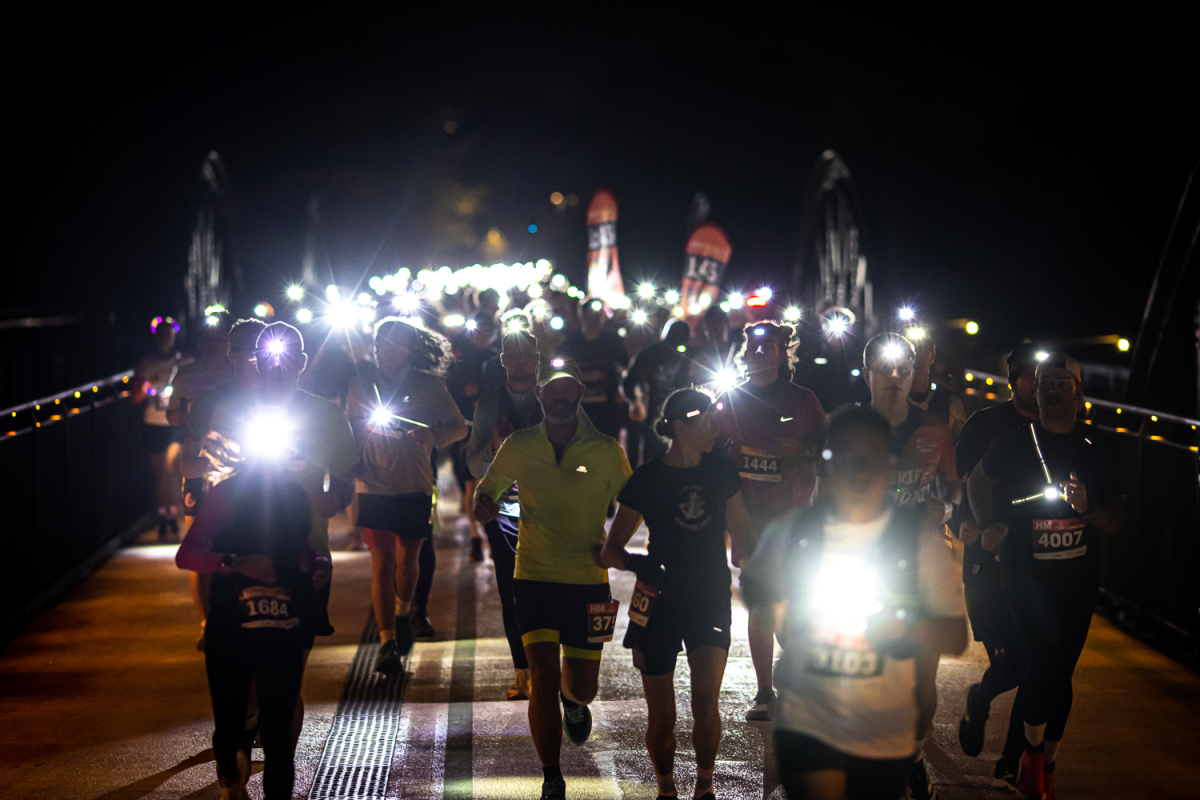 Der Radschnellweg ist abends nicht beleuchtet. Ihr benötigt also eine Stirnlampe, um mitlaufen zu können – das wird grandios aussehen und sich noch besser anfühlen!