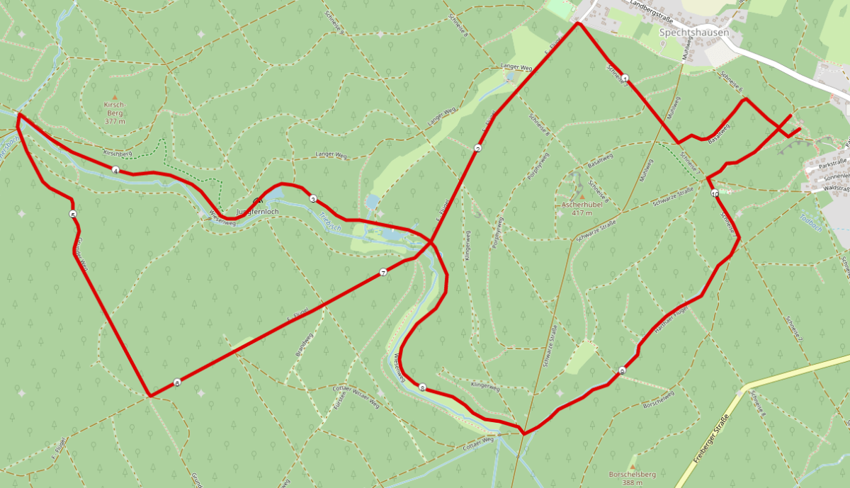 Strecke 10,5 km Nordic Walking und Walking: Tharandter Waldlauf Walking Strecke