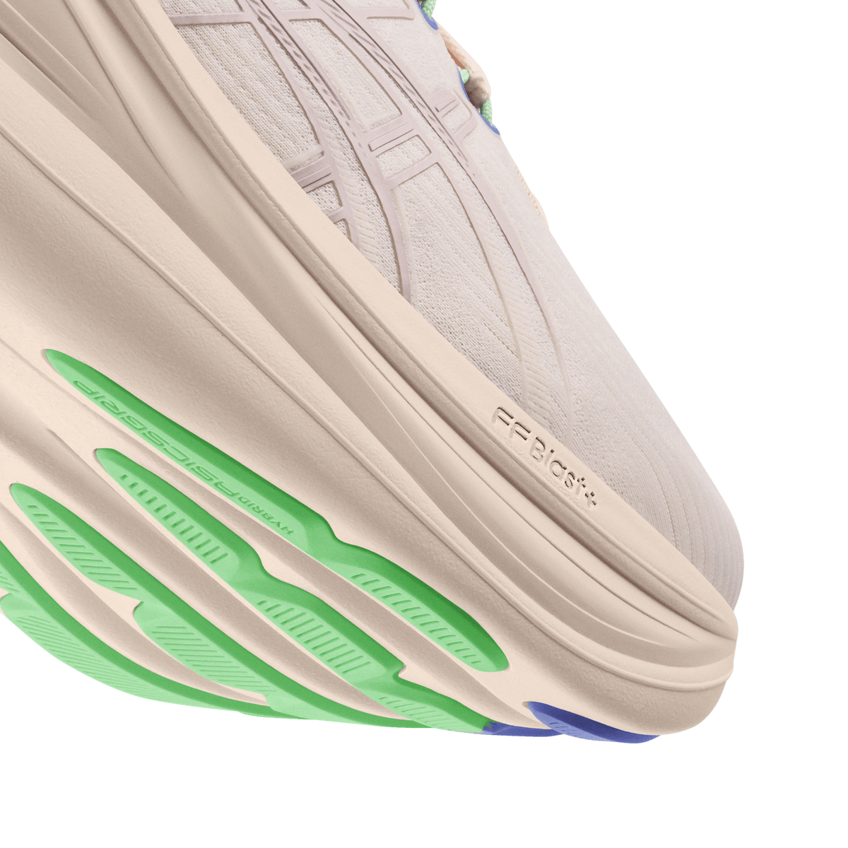 - Eine überarbeitete HYBRID ASICSGRIP Außensohle, die dir sicheren Halt gibt – sogar dann, wenn du mal wieder der Meinung bist, du müsstest bei Regen Bestzeiten jagen.