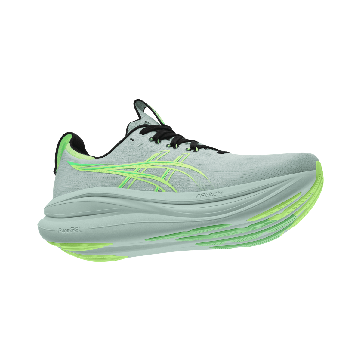 Der Kern des Ganzen steckt in der neuen FF BLAST PLUS Dämpfung. Die sorgt für weichere Landungen, ohne dass du das Gefühl bekommst, in einer Hüpfburg gefangen zu sein. PureGEL rundet das Ganze ab – leichter als die klassische GEL Technologie und trotzdem zuverlässig wie ein Freund, der immer zu viel Essen bestellt, damit du auch was bekommst.