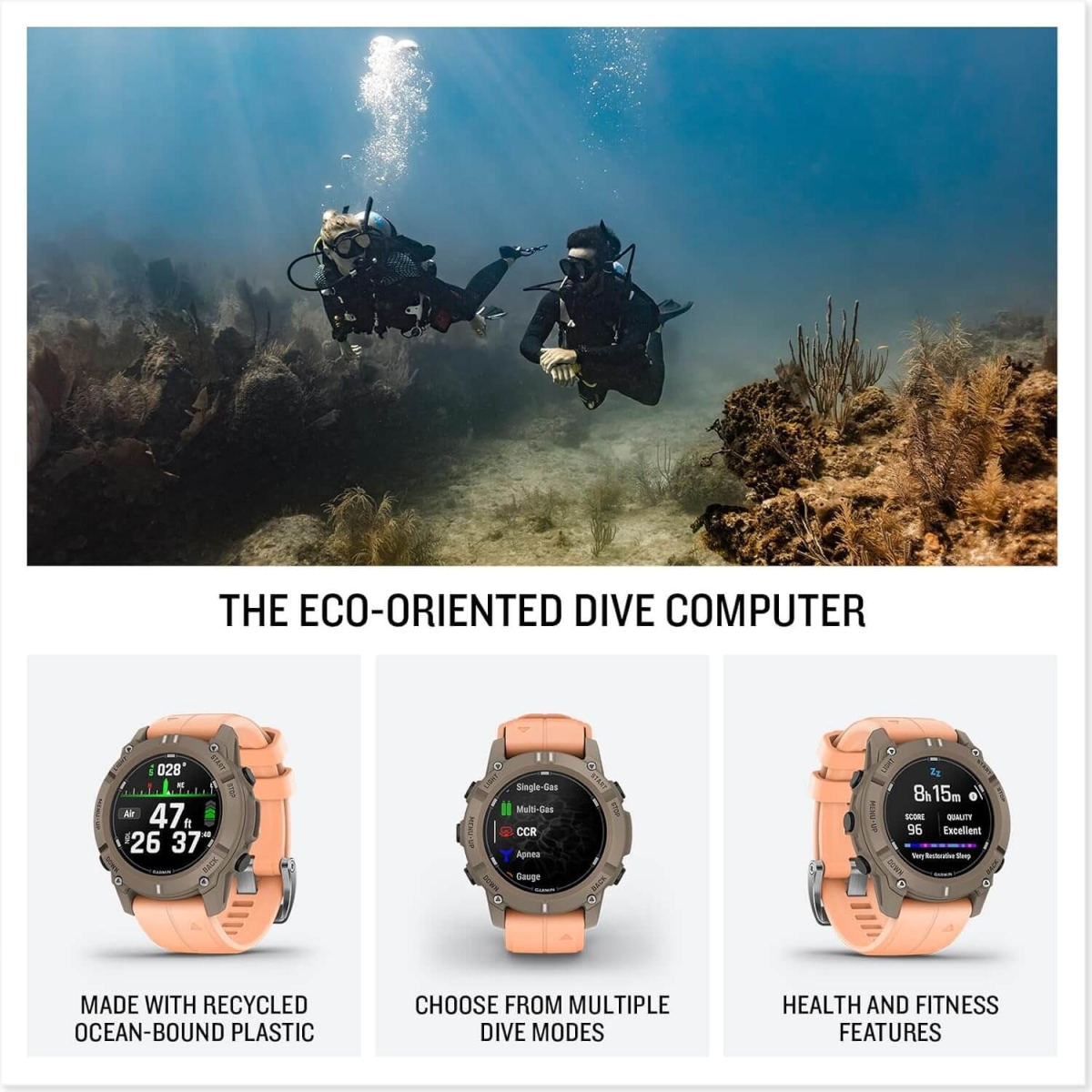 Die Descent G2 ist nicht nur technisch ein Schwergewicht, sondern setzt auch ein Statement für die Umwelt: Gehäuse, Lünette und Tasten bestehen aus recyceltem Ocean Bound Plastic – Plastik, das sonst im Meer gelandet wäre. Stark, oder?