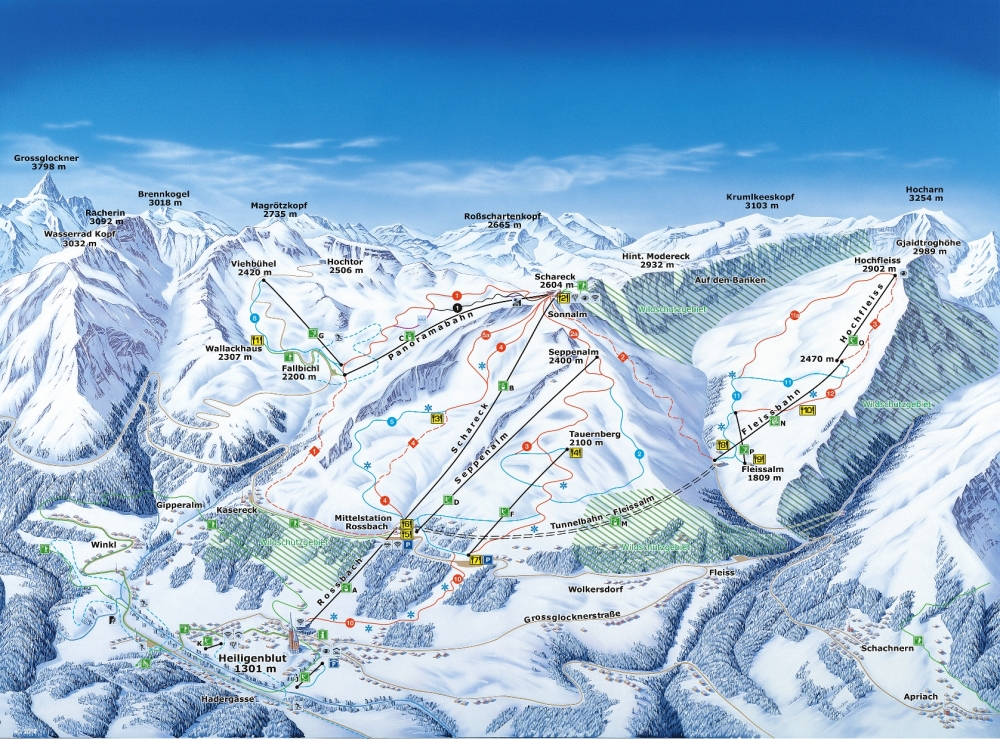 | Größe: | Das Skigebiet Grossglockner Heiligenblut besteht aus 55,0 Pistenkilometern, davon 20 leichten, 34 mittleren und 1 schweren Pistenkilometern. |