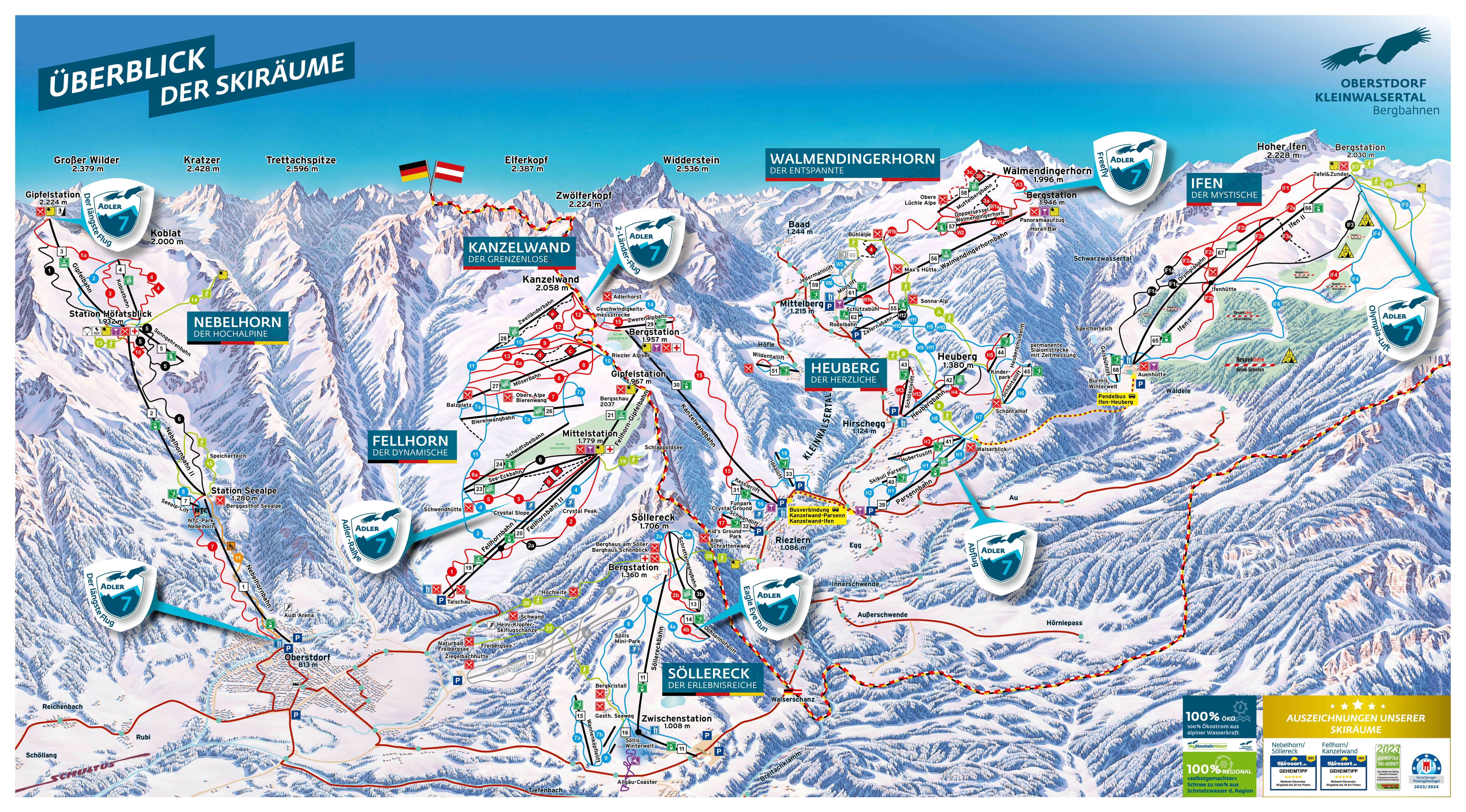 Die Skiregion Kleinwalsertal-Oberstdorf besteht aus den vier Skigebieten Nebelhorn, Söllereck, Fellhorn/Kanzelwand und Walmendingerhorn/Ifen Heuberg.