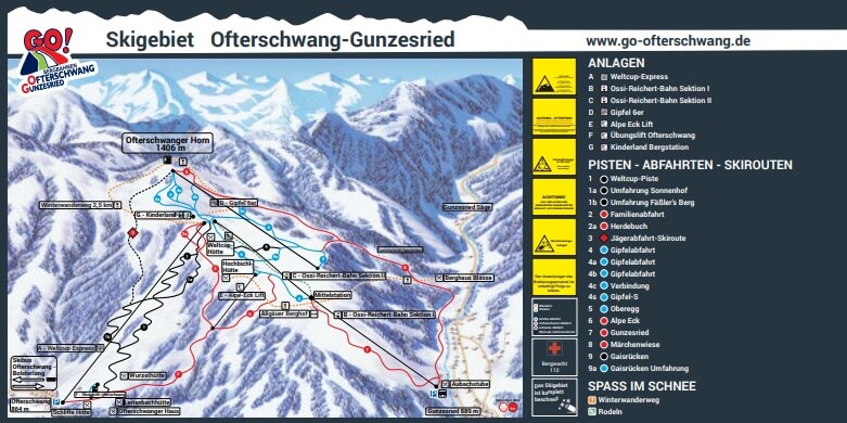 | Größe: | Das Skigebiet Ofterschwang - Gunzesried besteht aus 18,0 Pistenkilometern, davon 4.7 leichten, 9.2 mittleren und 4.2 schweren Pistenkilometern. |