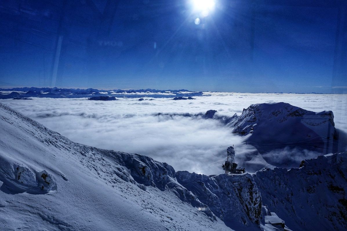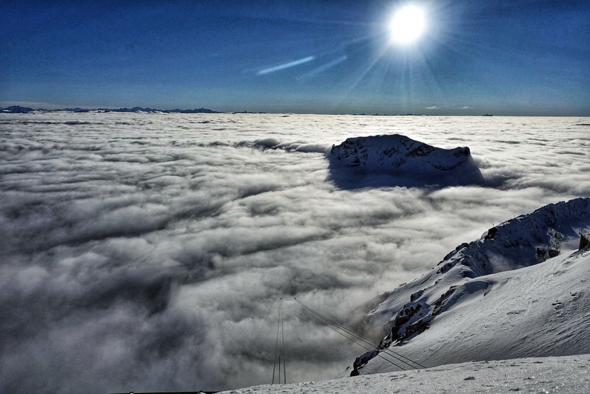 Schnee und Eis, umrahmt von Fels und Himmel: Auf der Zugspitze empfängt passionierte Wintersportler ein Skigebiet der Superlative! Dank der privilegierten Höhenlage zwischen 2.000 und 2.720 Metern gibt’s hier das halbe Jahr lang Naturschnee satt und strahlende Wintersonne, selbst wenn das Tal unter einer Nebeldecke verschwindet.