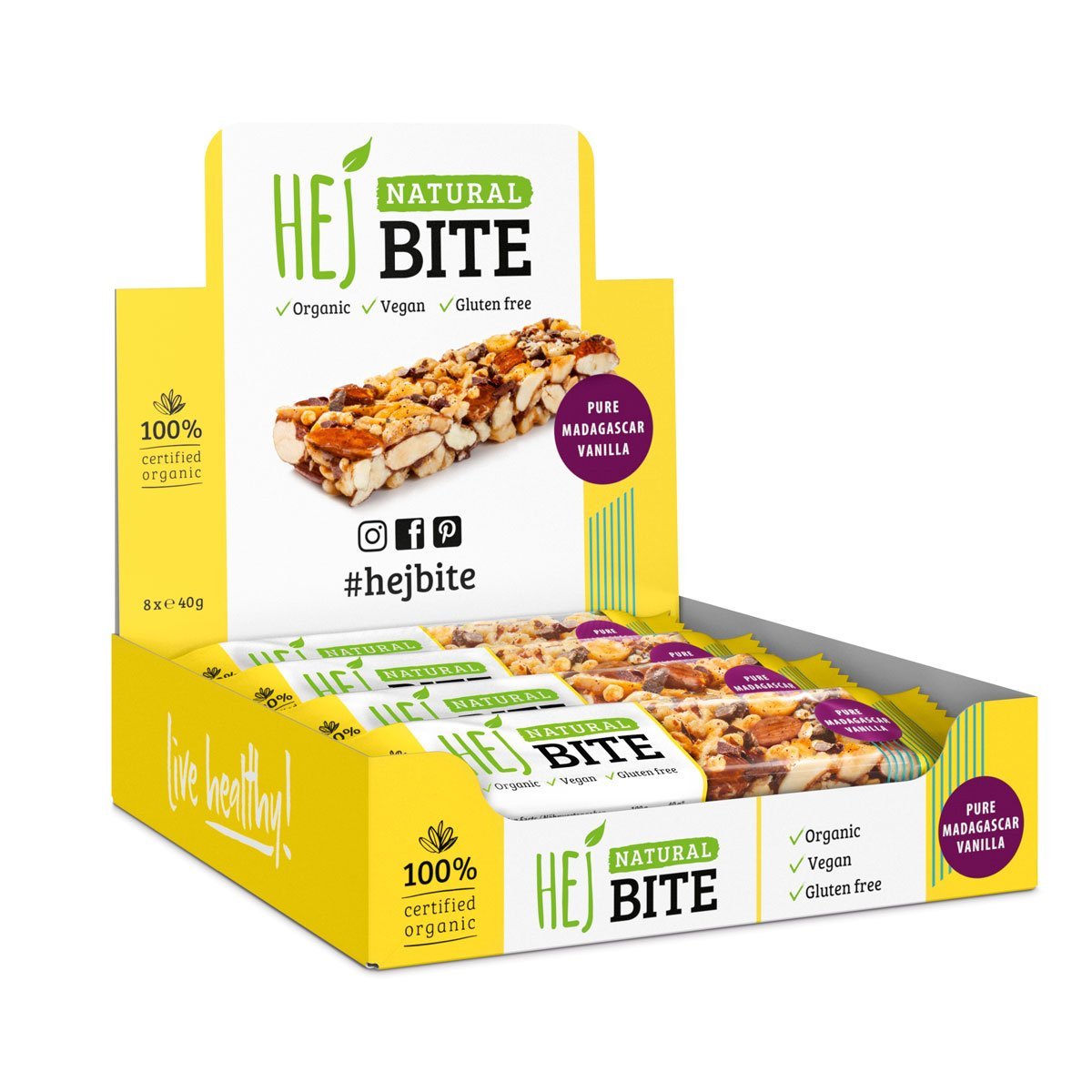 Endlich gibt es den perfekten Snack für unterwegs! Aus 100% Naturprodukten hergestellt gibt der Hejbite leckere Energie auf Reisen, oder am Nachmittag im Büro.