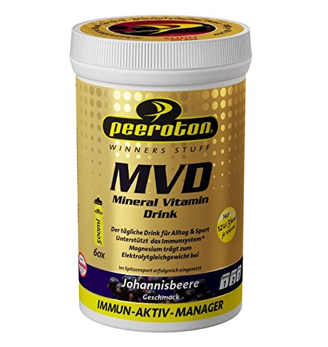 Dieses Produkt liefert eesentielle Mineralstoffe und Vitamine, die durch Sport, unausgewogene Ernährung oder Stressbelastungen des Altags verstärkt zugeführt werden sollten. Ebenso verbessert es die Regeneration. Peeroton MVD zeichnet sich durch sofortige Umsetzung der Wirkstoffe im Körper und optimale Magen-Darmverträglichkeit aus und wird von Spitzensportlern erfolgreich verwendet. Auch als Warmgetränk (bis 40 Grad Celsius) hervorragend einsetzbar. Peeroton Mineral Vitamin Drink ergänzt die Zufuhr der essentiellen Mineralstoffe und Vitamine, deren Bedarf durch Sport oder Stressbelastungen des Alltags erhöht ist. Durch die Beifügung von Zink wird eine Stärkung des Immunsystem bewirkt, Chrom verbessert die Spaltung von Kohlenhydraten und Proteinen.
