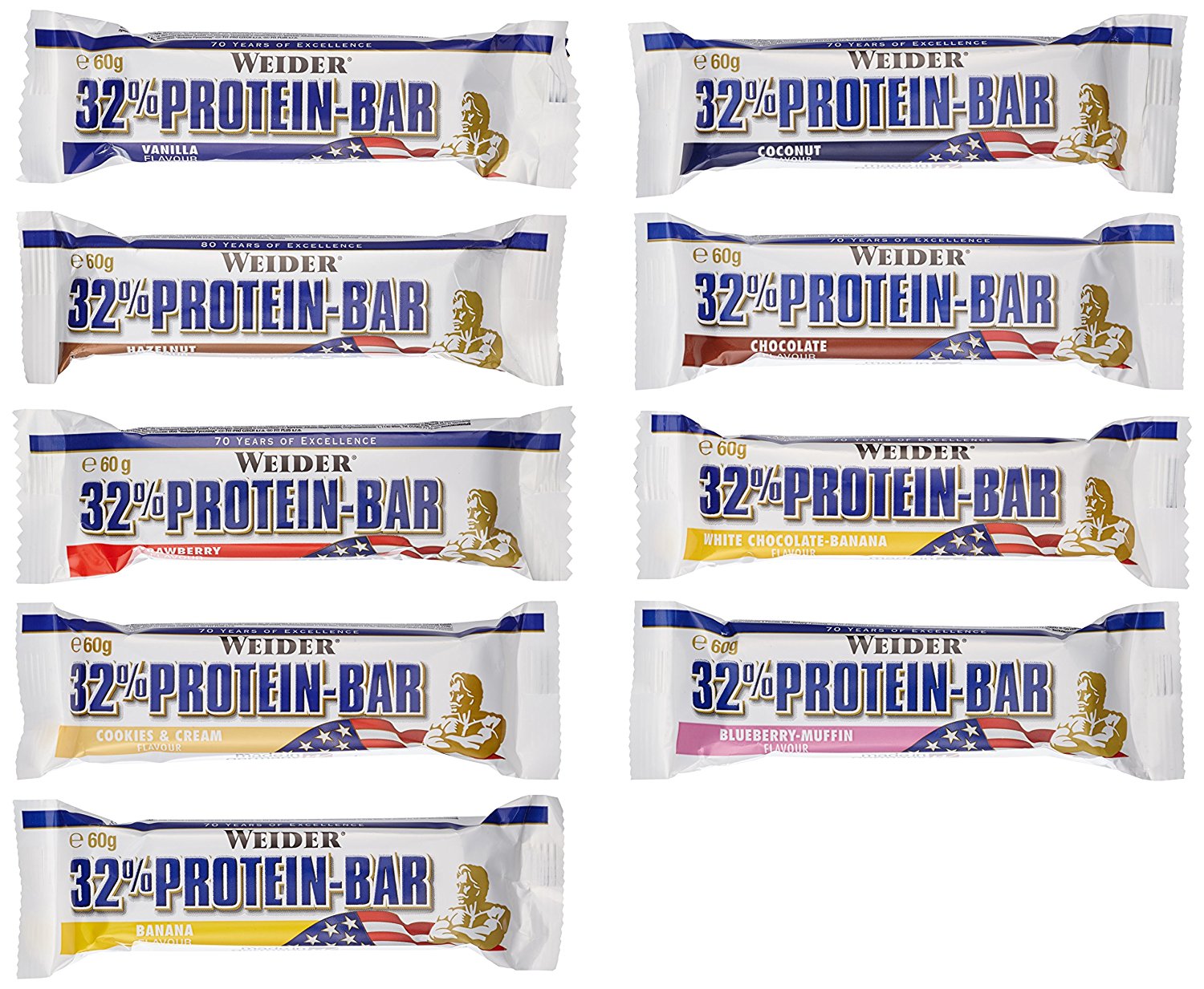 Der 32% Protein Bar gibt Ihnen die Möglichkeit einer einfachen und ausgewogenen Ernährung. Der 32% Protein Bar enthält pro Riegel nur 5,4 g Fett und dafür mehr als 19 g Eiweiß.