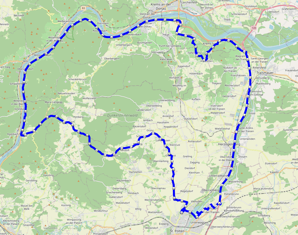 Laufstrecke: 2 Runden in St. Pölten, entlang der Traisen inkl. Innenstadt